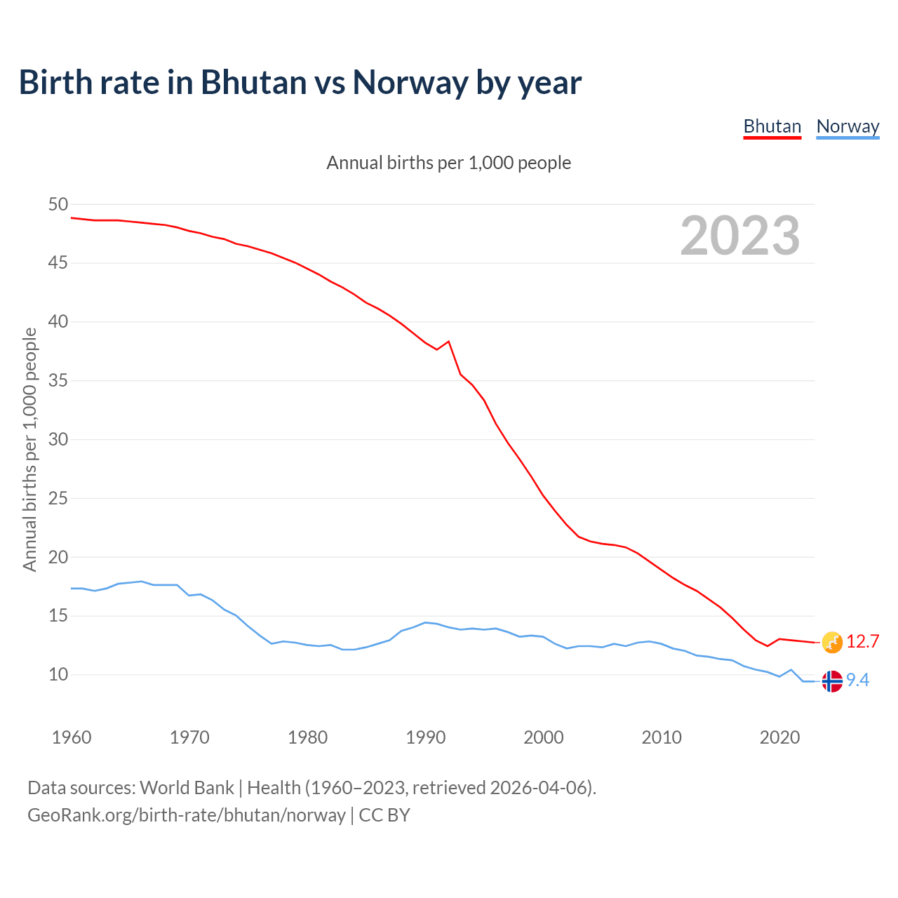GeoRank.org/birth-rate/bhutan/norway | CC BY