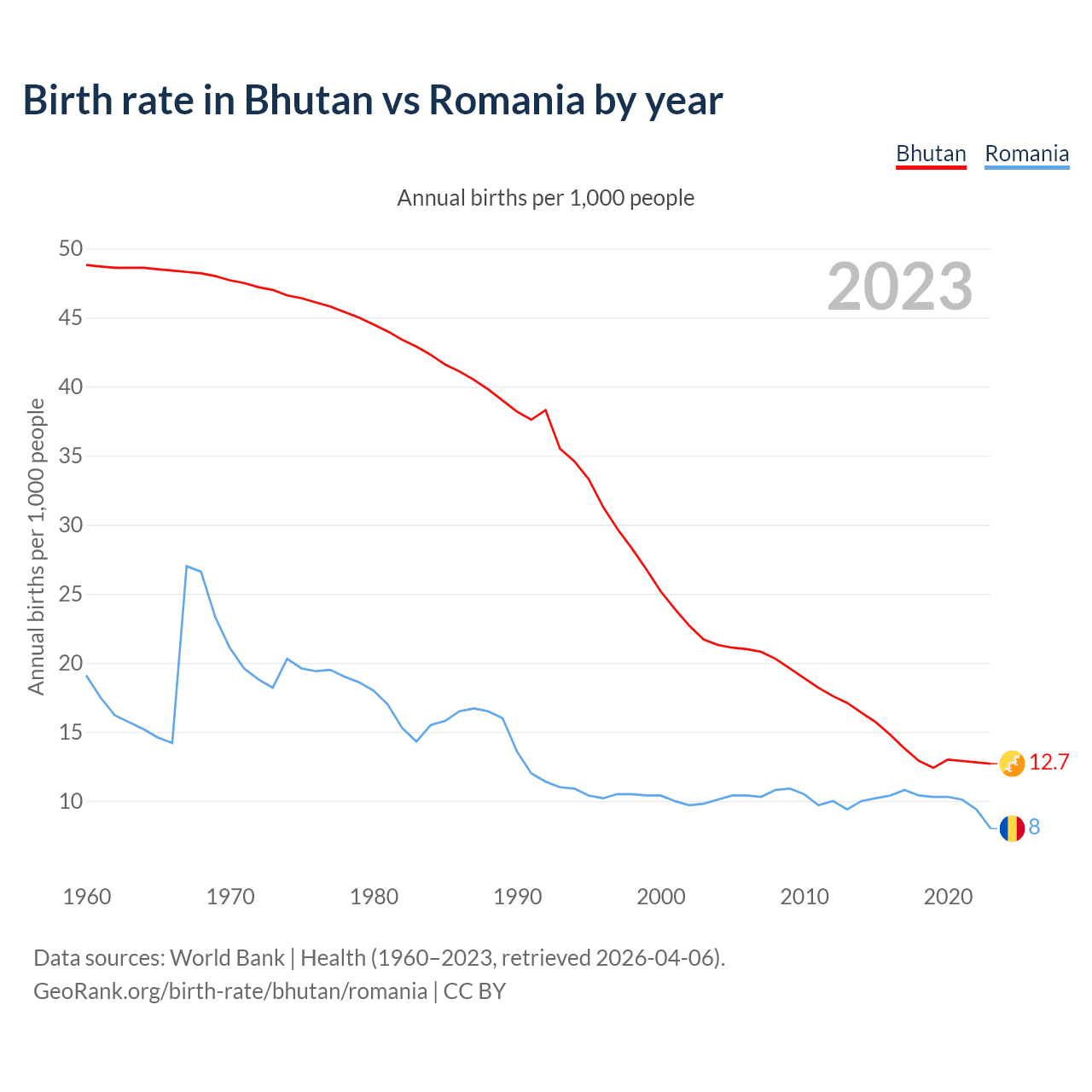 GeoRank.org/birth-rate/bhutan/romania | CC BY