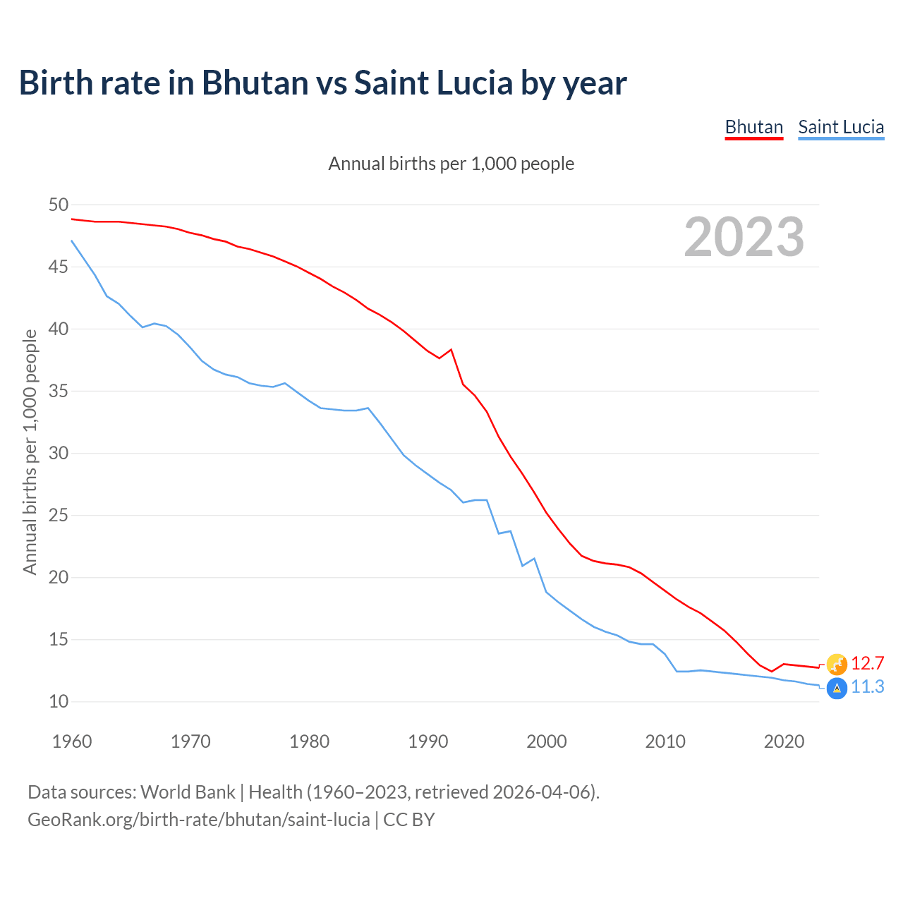 GeoRank.org/birth-rate/bhutan/saint-lucia | CC BY