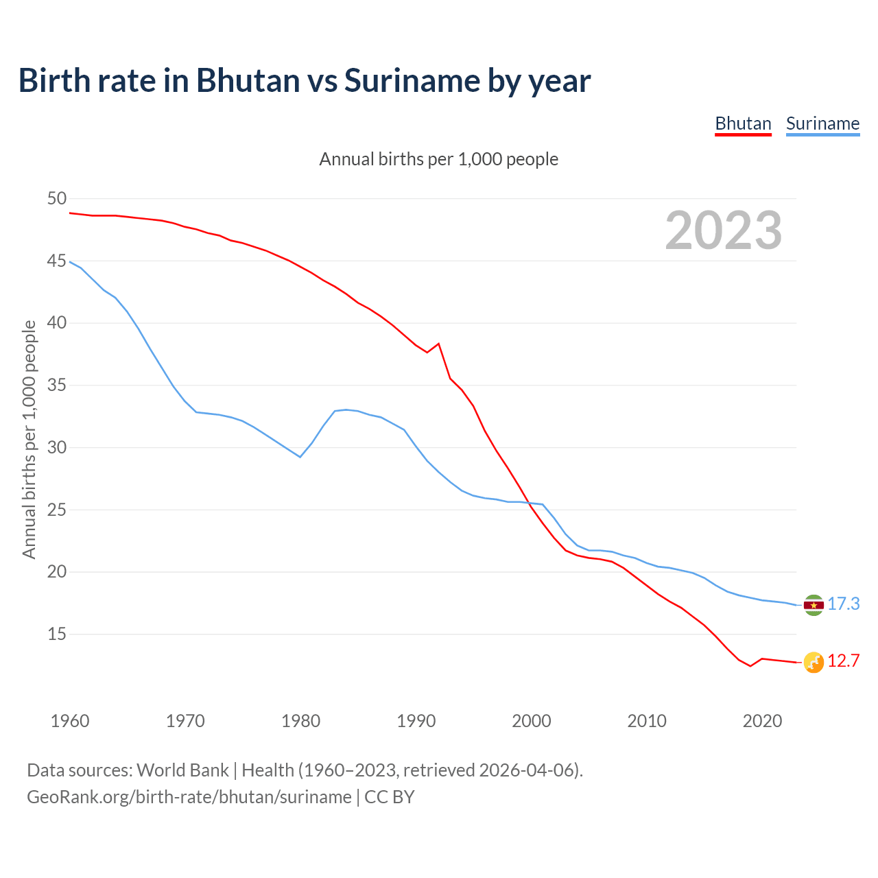 GeoRank.org/birth-rate/bhutan/suriname | CC BY