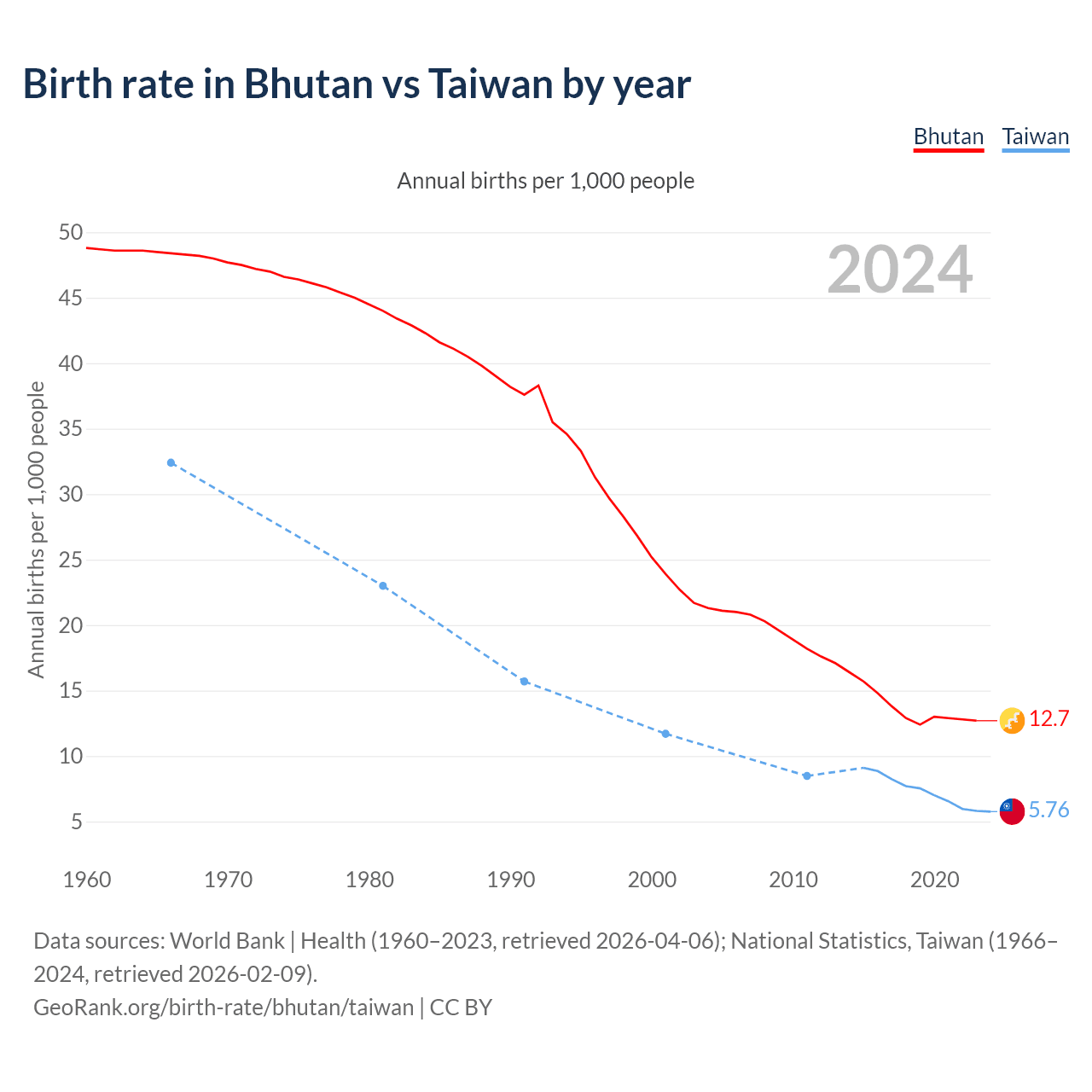 GeoRank.org/birth-rate/bhutan/taiwan | CC BY