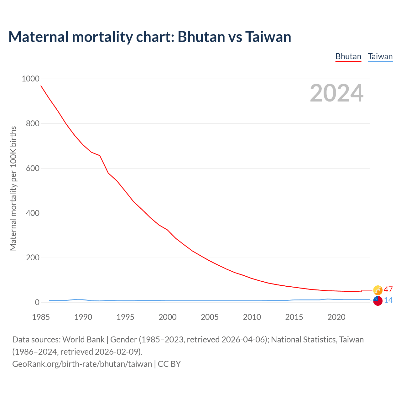 Maternal mortality chart: Bhutan vs Taiwan
