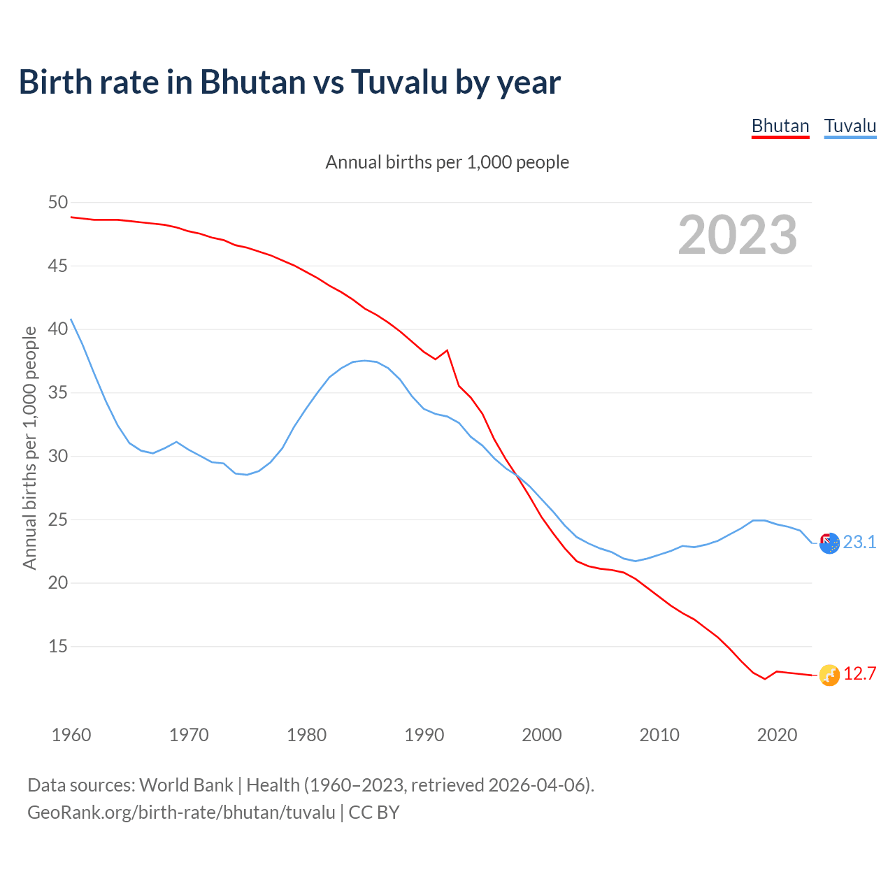 GeoRank.org/birth-rate/bhutan/tuvalu | CC BY