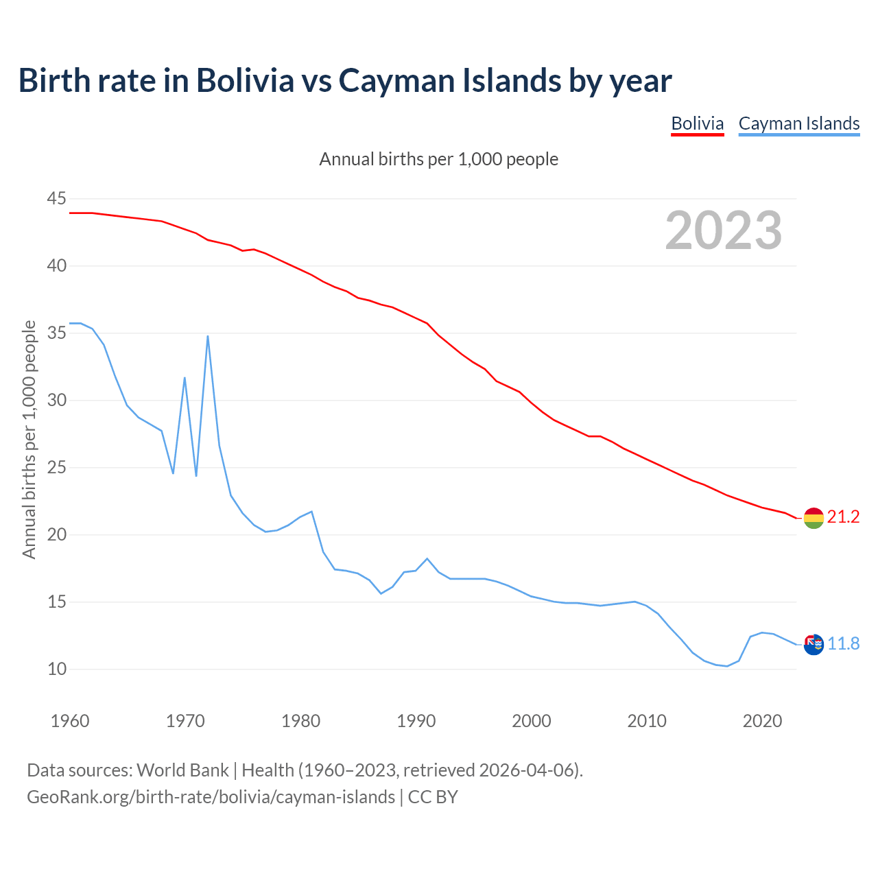 GeoRank.org/birth-rate/bolivia/cayman-islands | CC BY