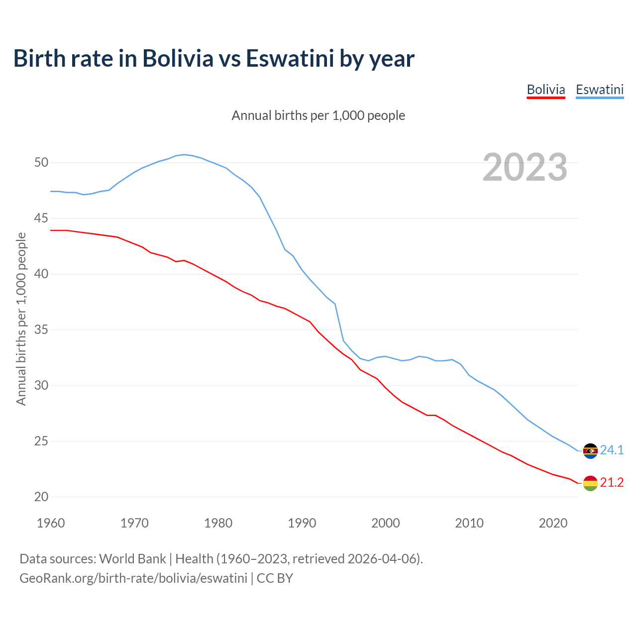 GeoRank.org/birth-rate/bolivia/eswatini | CC BY
