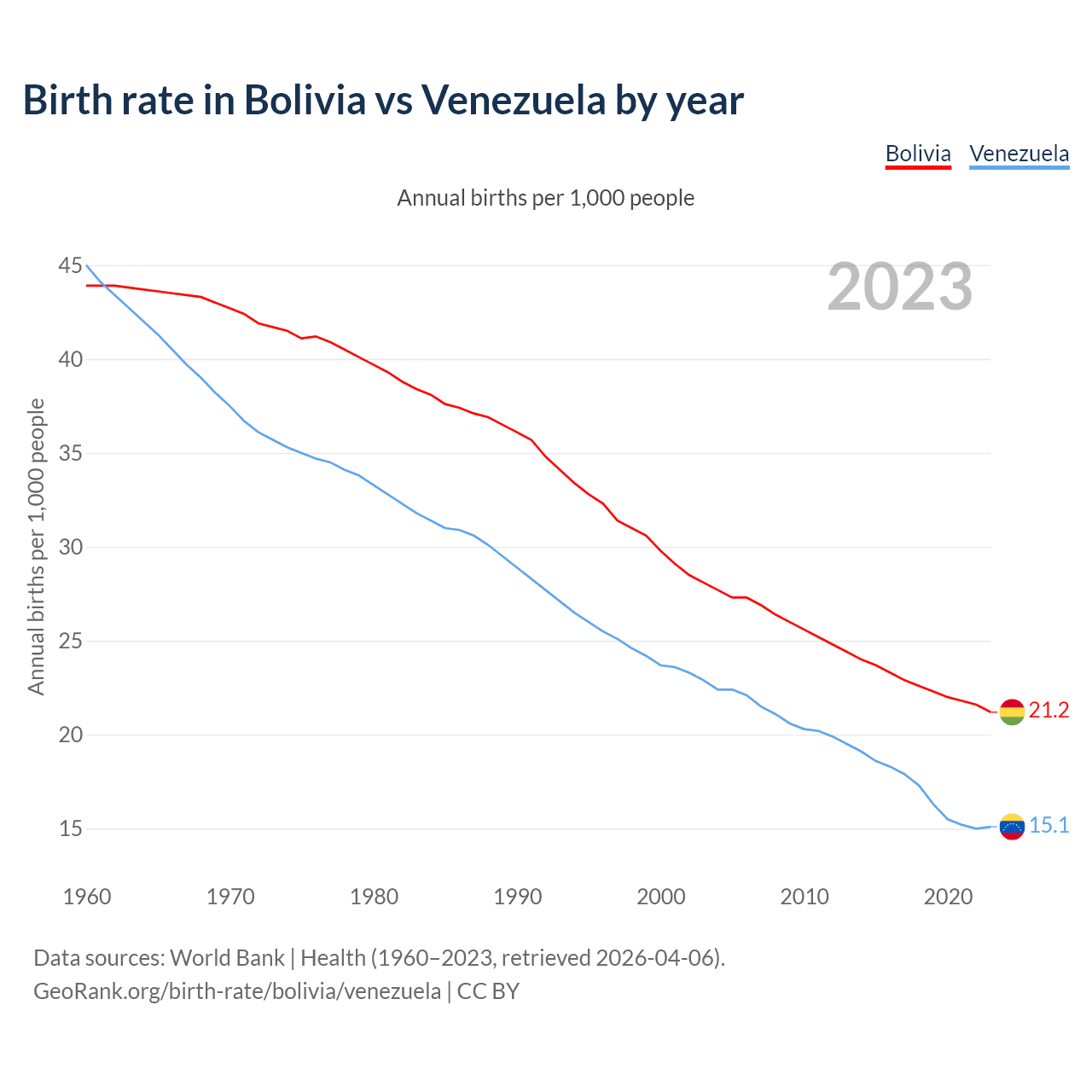 GeoRank.org/birth-rate/bolivia/venezuela | CC BY