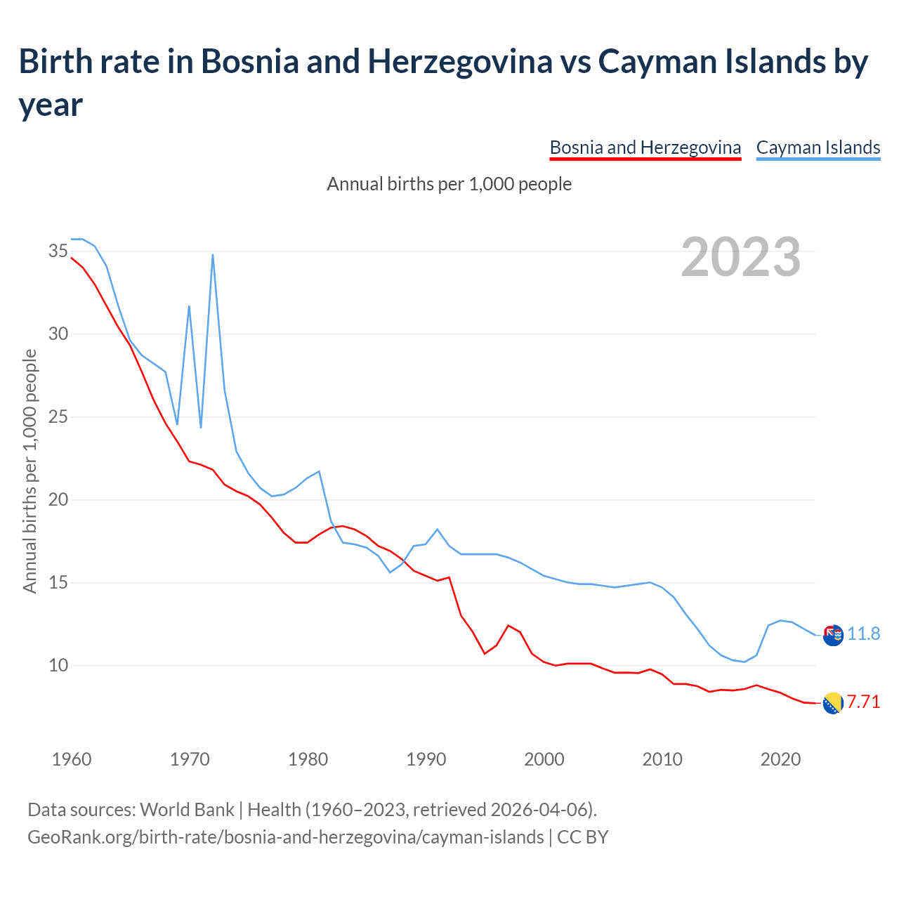 GeoRank.org/birth-rate/bosnia-and-herzegovina/cayman-islands | CC BY