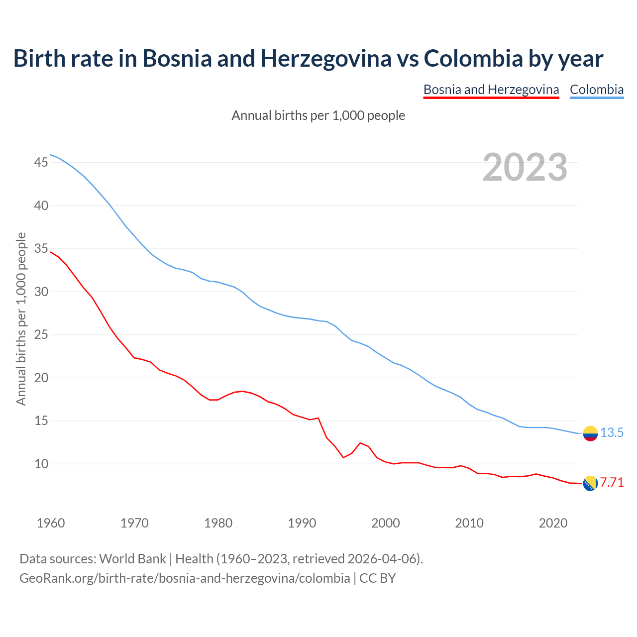 GeoRank.org/birth-rate/bosnia-and-herzegovina/colombia | CC BY