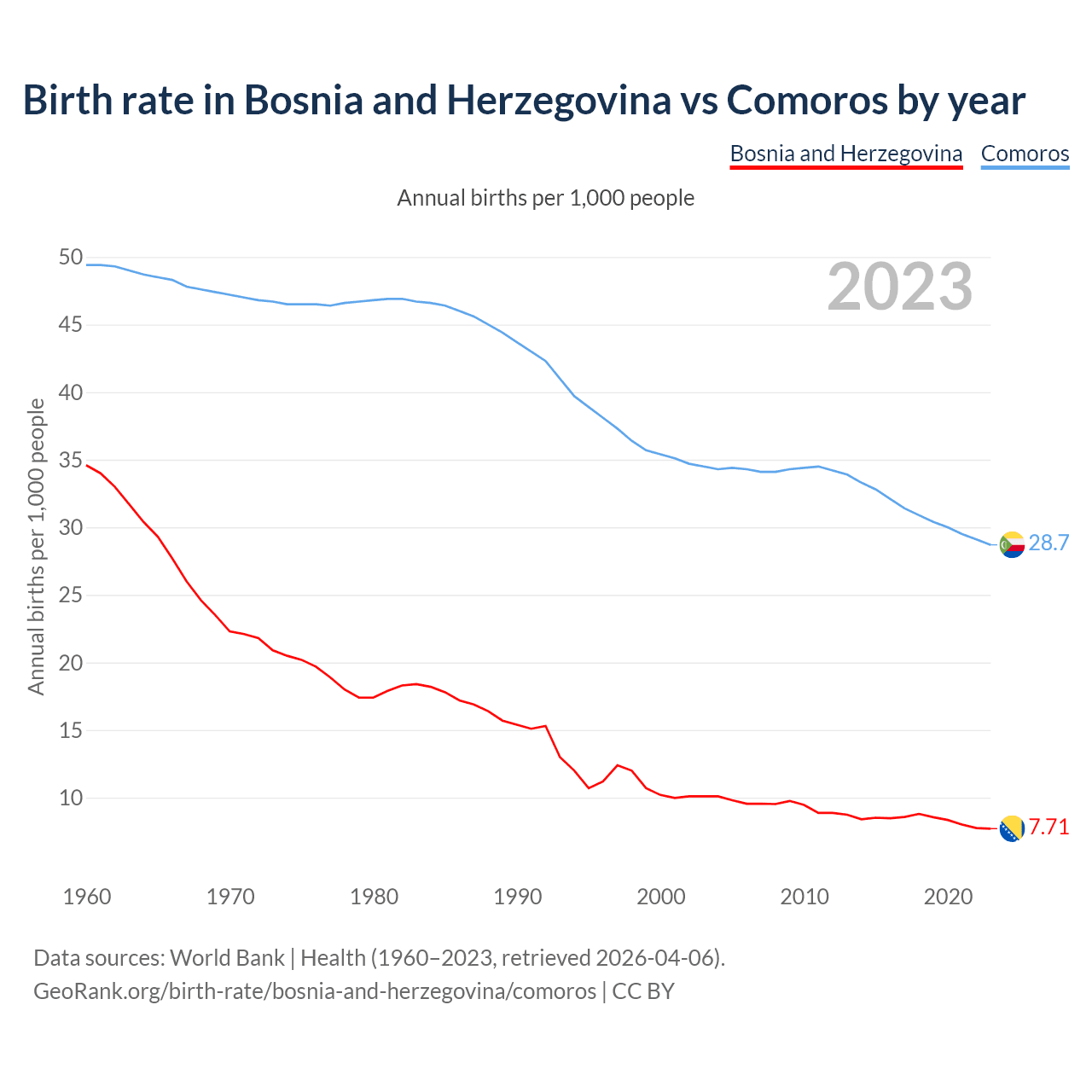 GeoRank.org/birth-rate/bosnia-and-herzegovina/comoros | CC BY