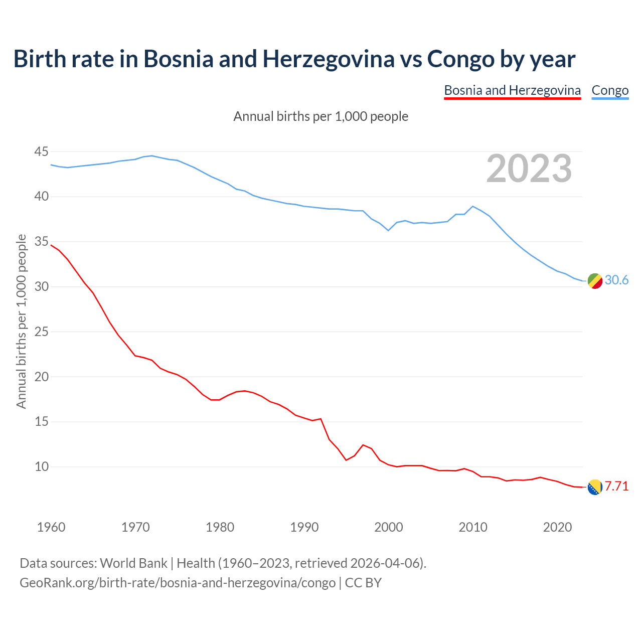 GeoRank.org/birth-rate/bosnia-and-herzegovina/congo | CC BY