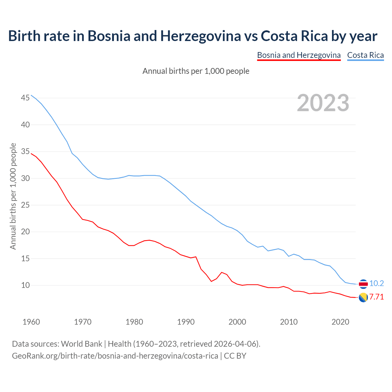 GeoRank.org/birth-rate/bosnia-and-herzegovina/costa-rica | CC BY