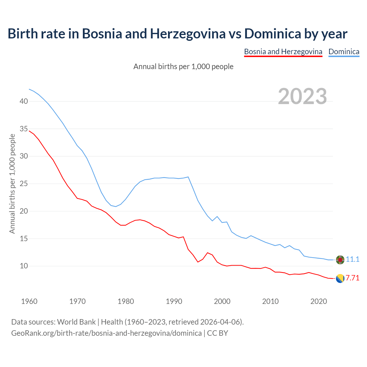 GeoRank.org/birth-rate/bosnia-and-herzegovina/dominica | CC BY