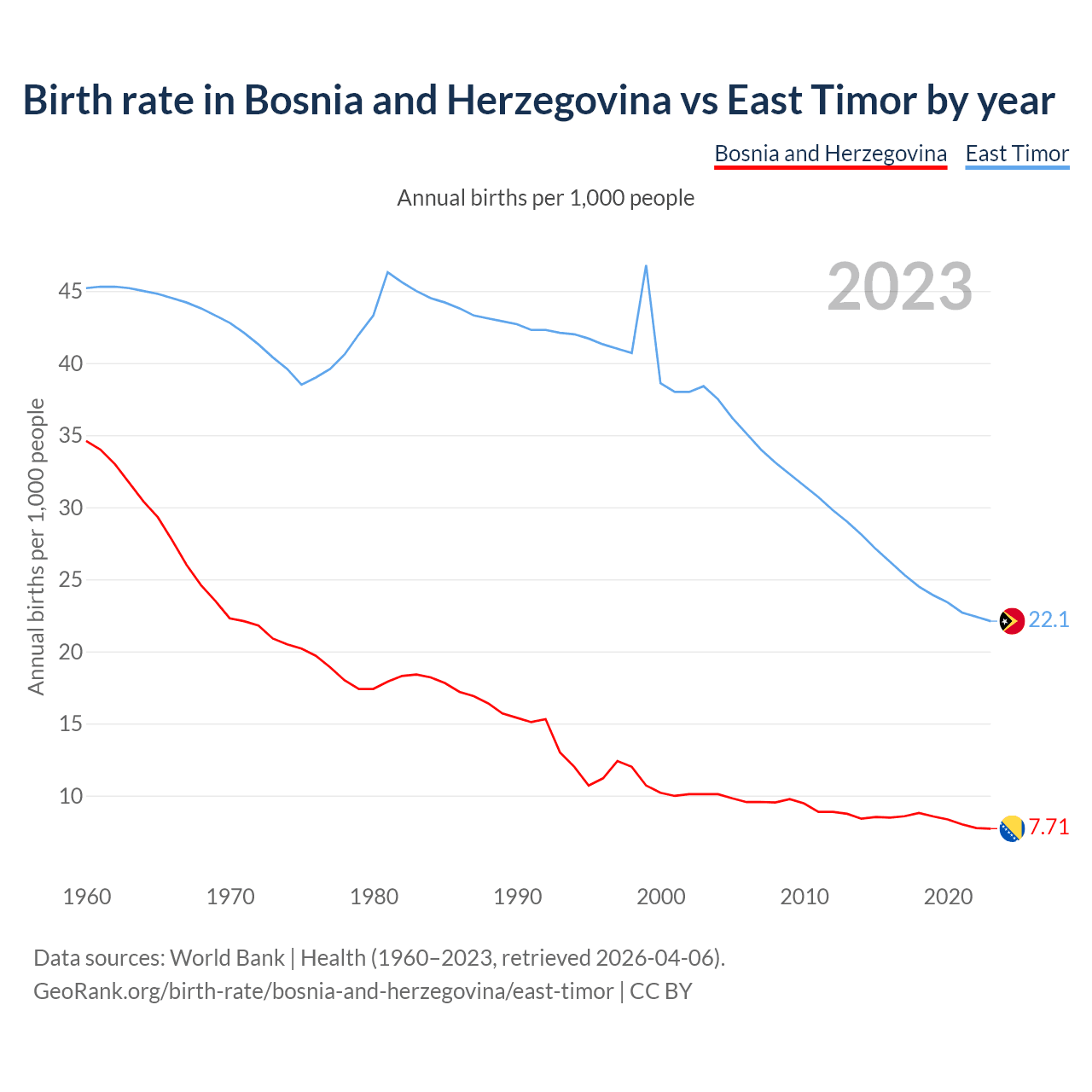 GeoRank.org/birth-rate/bosnia-and-herzegovina/east-timor | CC BY