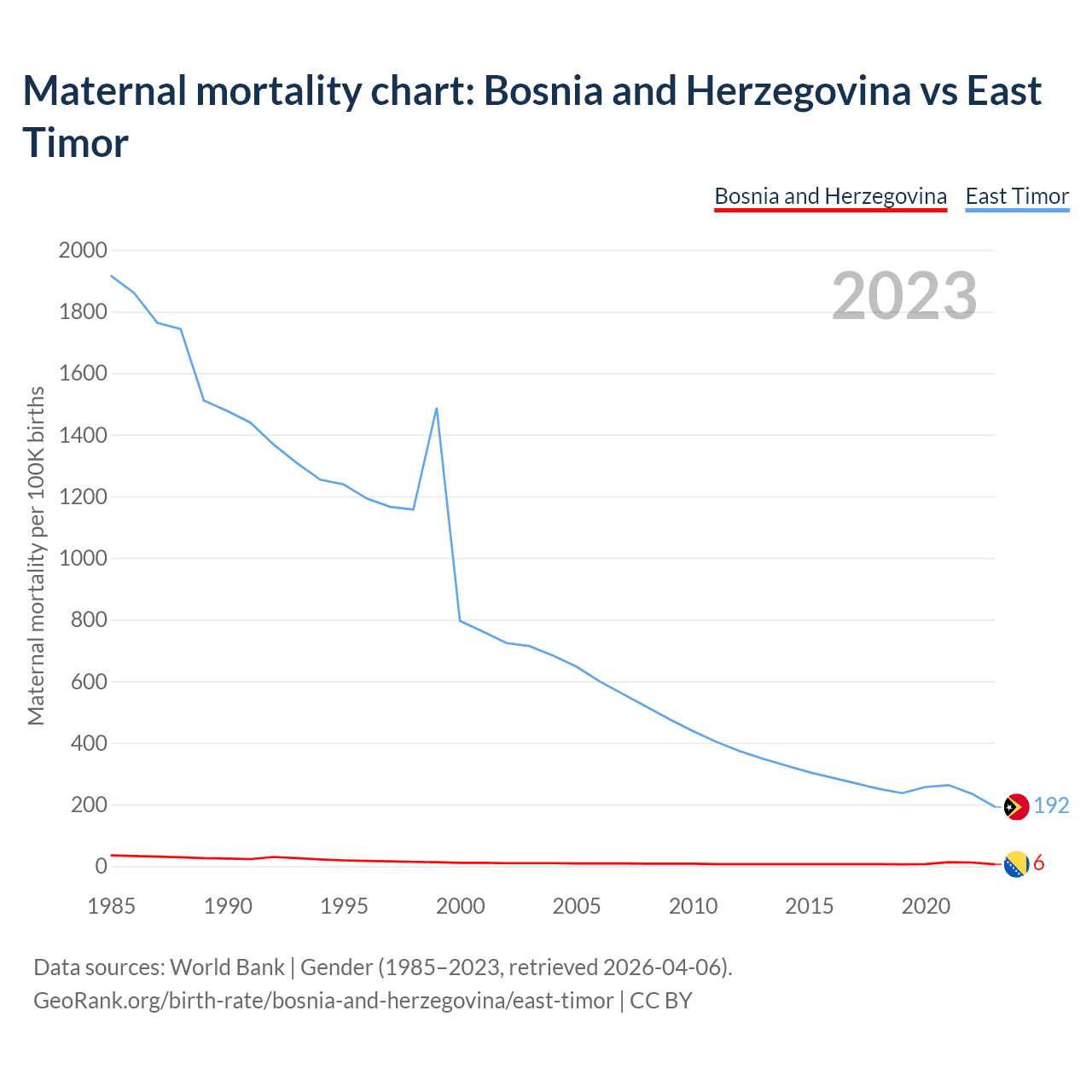 Maternal mortality chart: Bosnia and Herzegovina vs East Timor