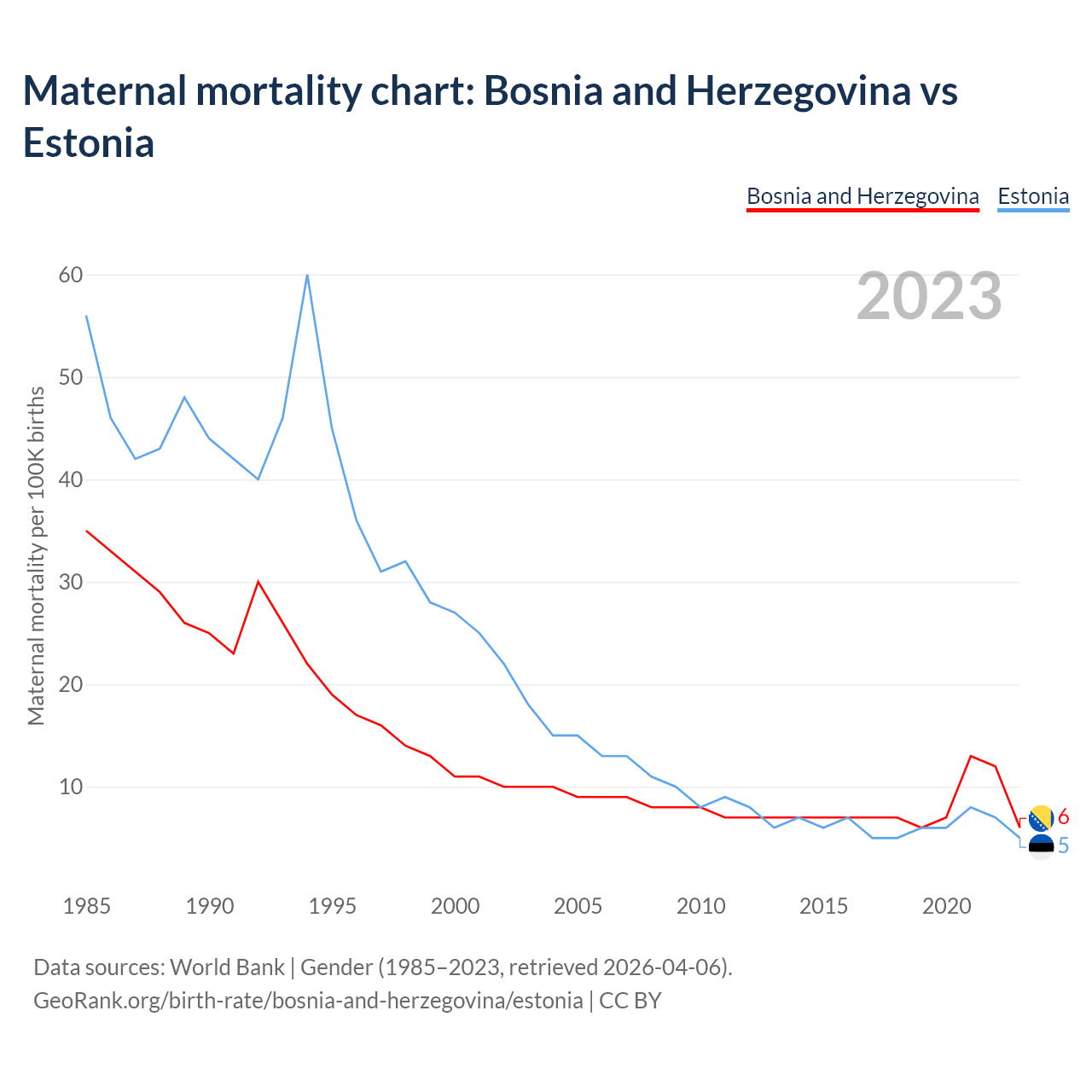 Maternal mortality chart: Bosnia and Herzegovina vs Estonia