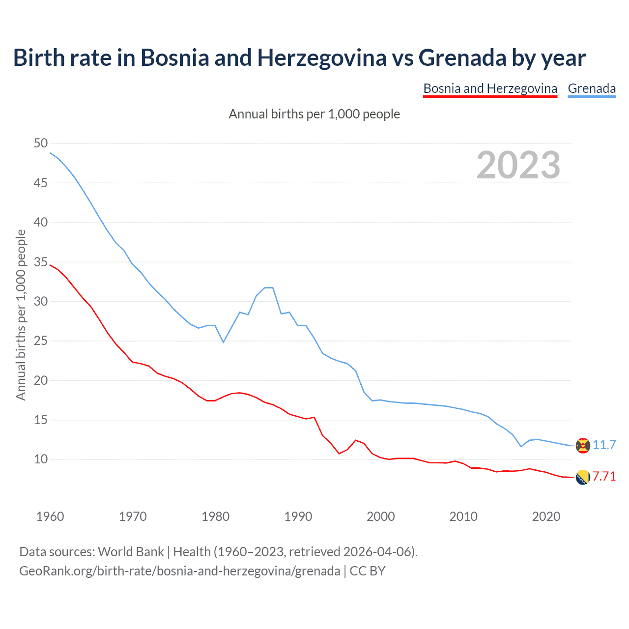 GeoRank.org/birth-rate/bosnia-and-herzegovina/grenada | CC BY