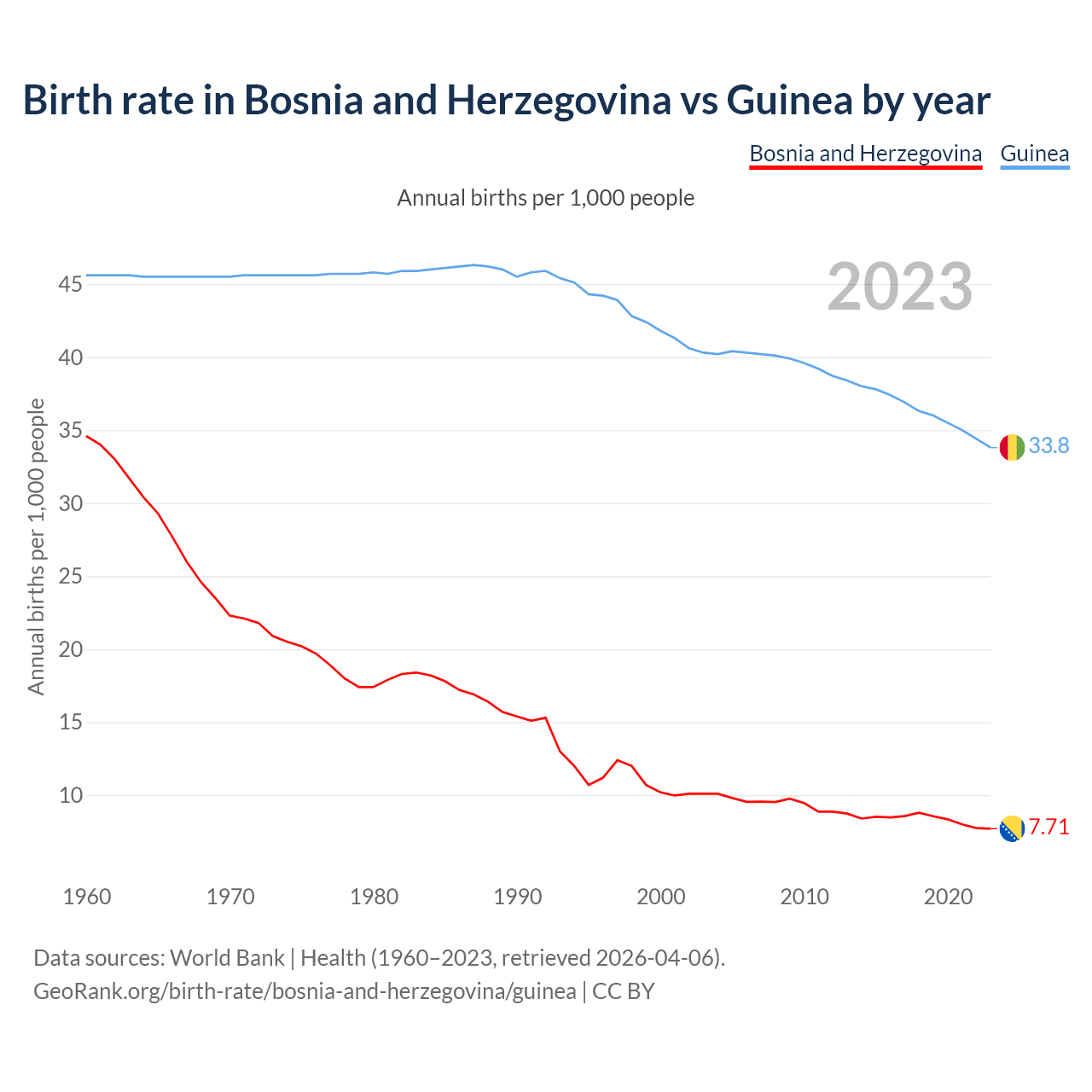 GeoRank.org/birth-rate/bosnia-and-herzegovina/guinea | CC BY