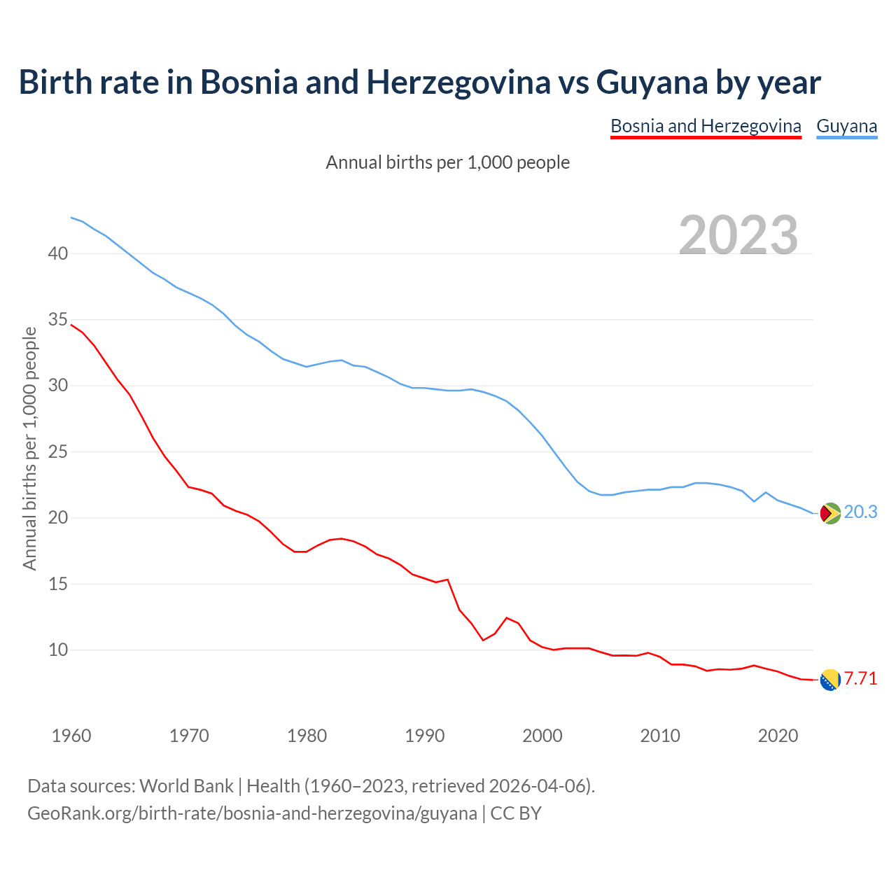 GeoRank.org/birth-rate/bosnia-and-herzegovina/guyana | CC BY