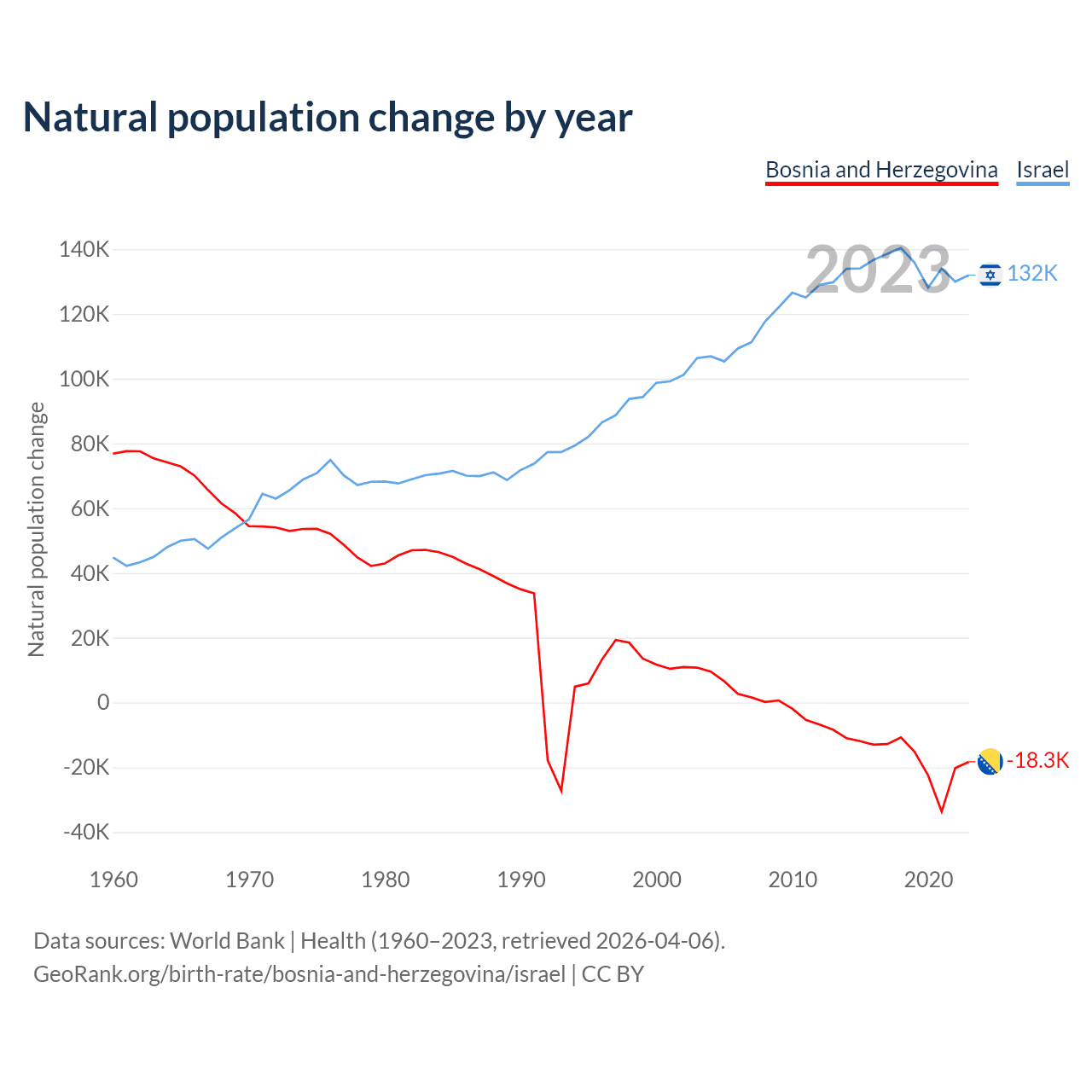 - Bosnia and Herzegovina is ranked 180/196 by birth rate compared to 83/196 for Israel.