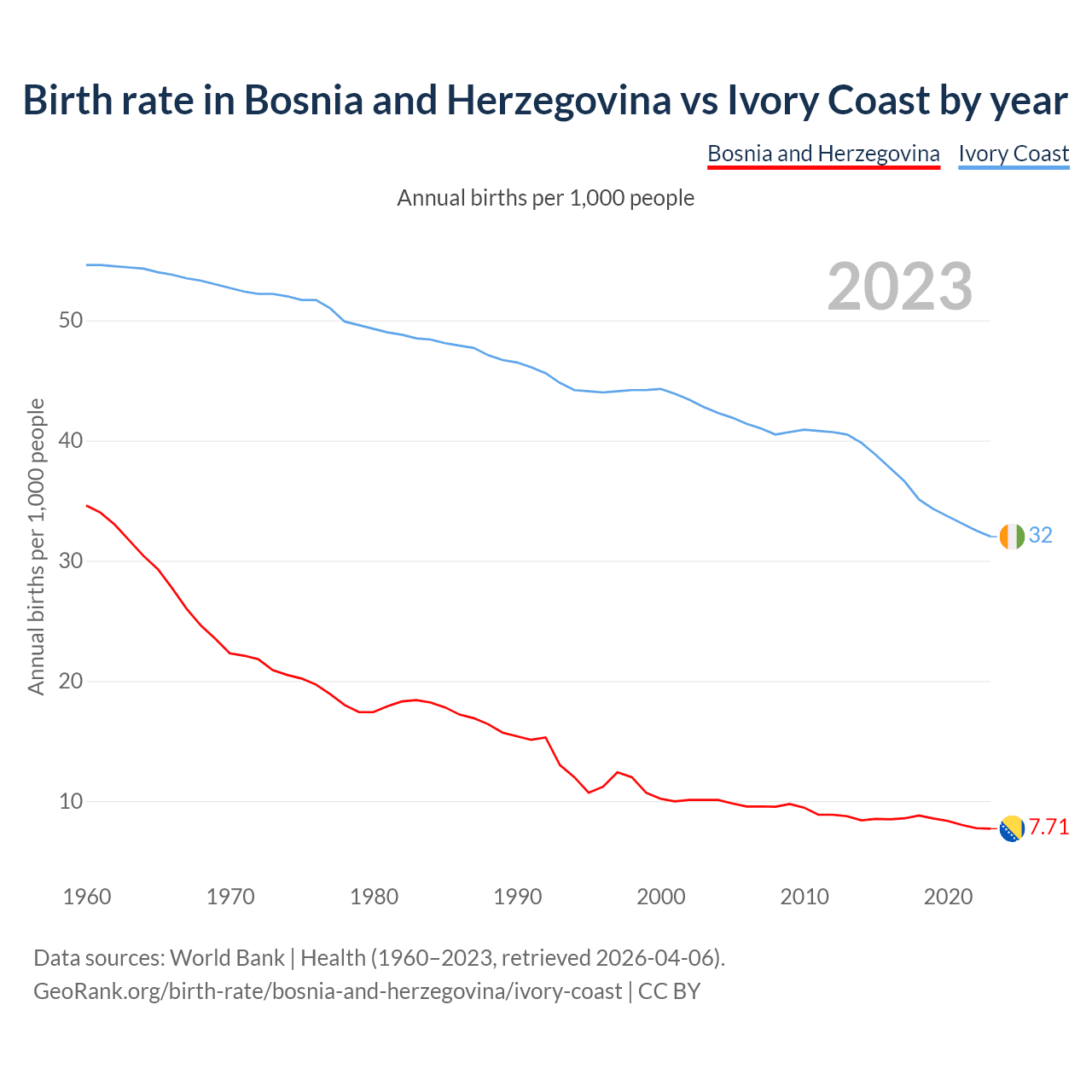 GeoRank.org/birth-rate/bosnia-and-herzegovina/ivory-coast | CC BY