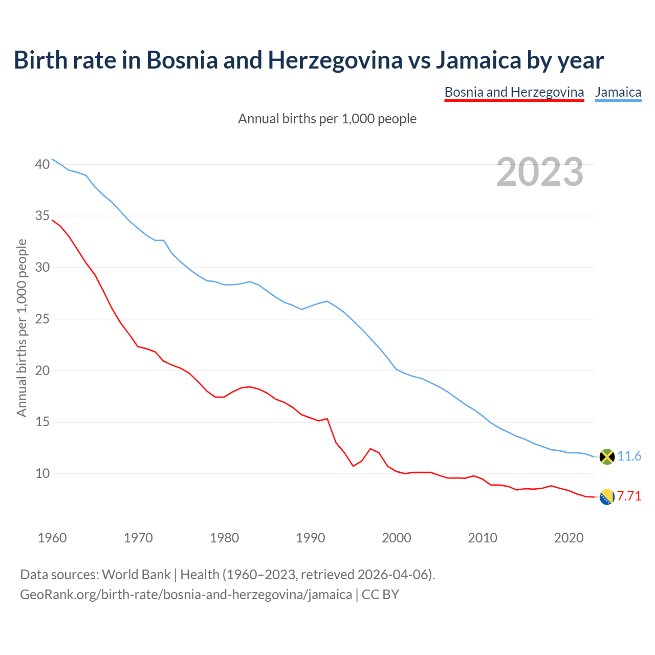 GeoRank.org/birth-rate/bosnia-and-herzegovina/jamaica | CC BY