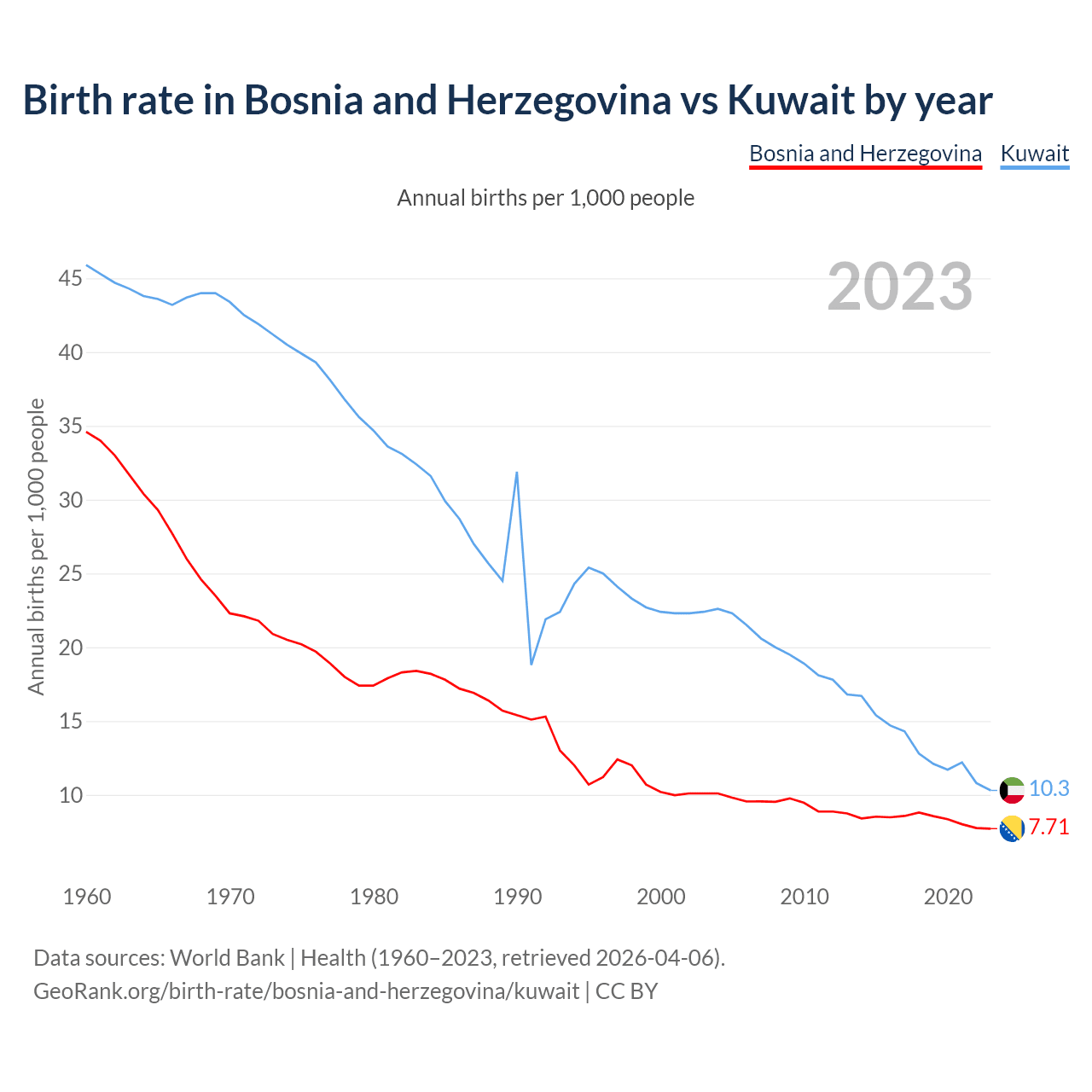 GeoRank.org/birth-rate/bosnia-and-herzegovina/kuwait | CC BY