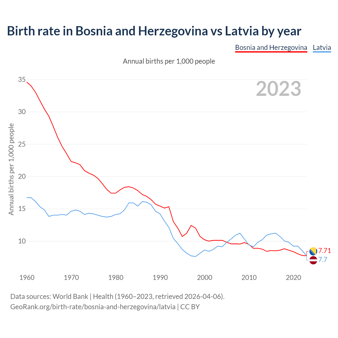 GeoRank.org/birth-rate/bosnia-and-herzegovina/latvia | CC BY