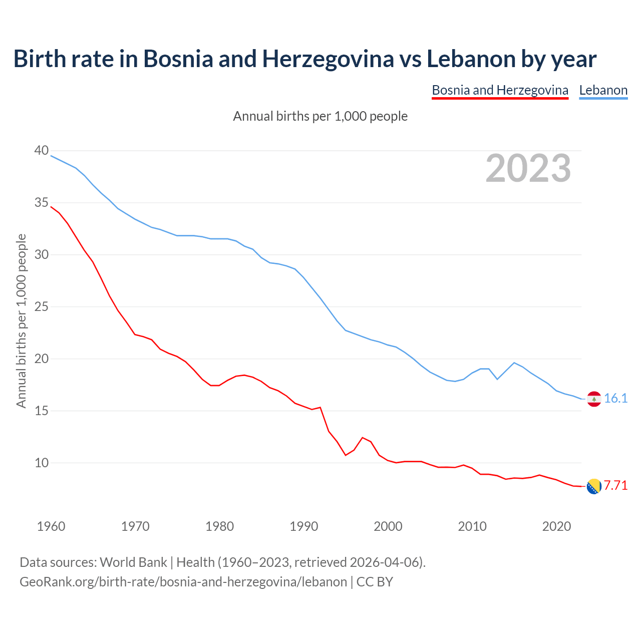 GeoRank.org/birth-rate/bosnia-and-herzegovina/lebanon | CC BY
