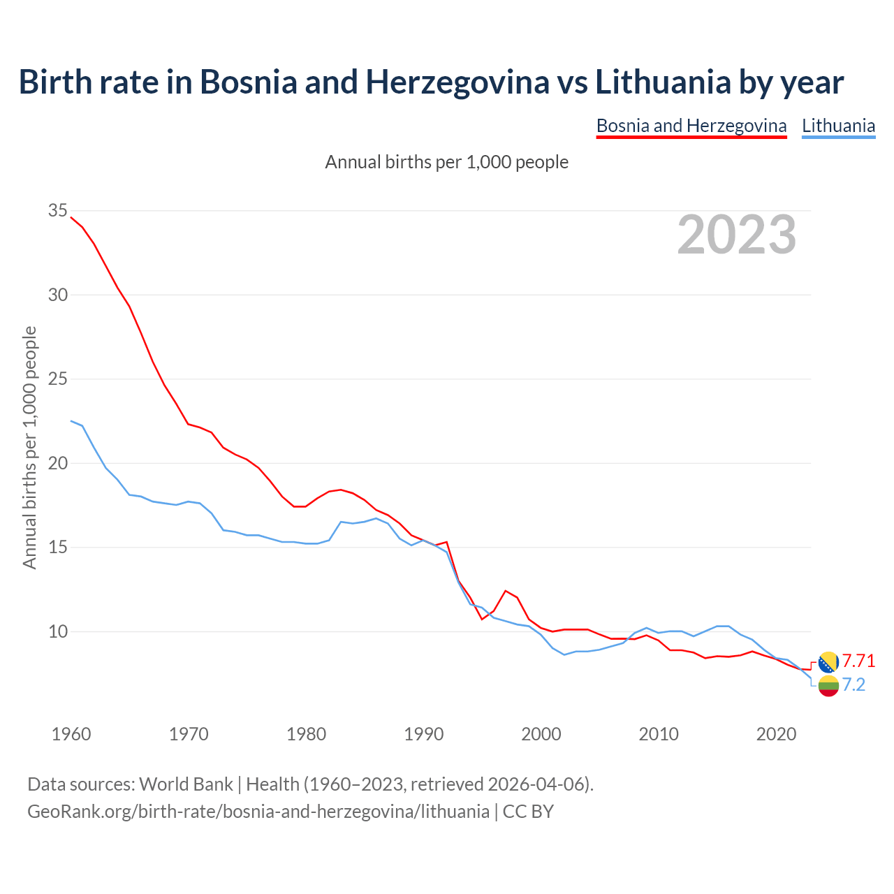 GeoRank.org/birth-rate/bosnia-and-herzegovina/lithuania | CC BY