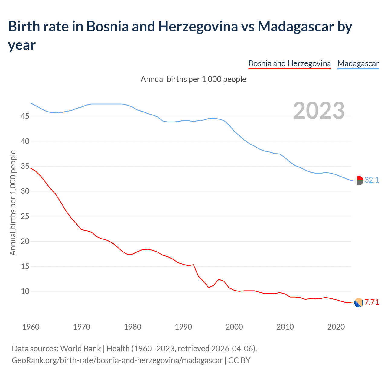 GeoRank.org/birth-rate/bosnia-and-herzegovina/madagascar | CC BY