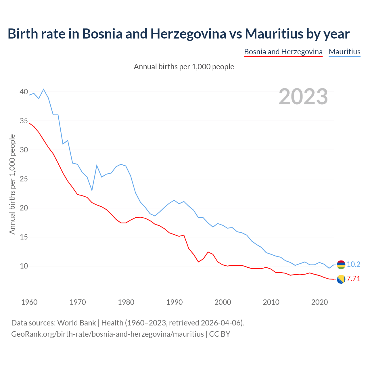 GeoRank.org/birth-rate/bosnia-and-herzegovina/mauritius | CC BY
