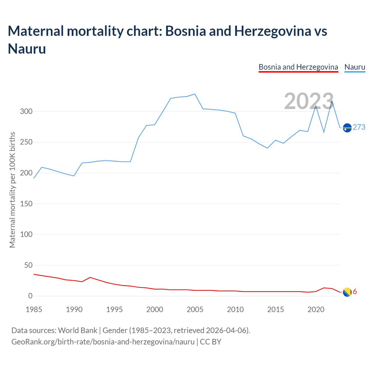 Maternal mortality chart: Bosnia and Herzegovina vs Nauru