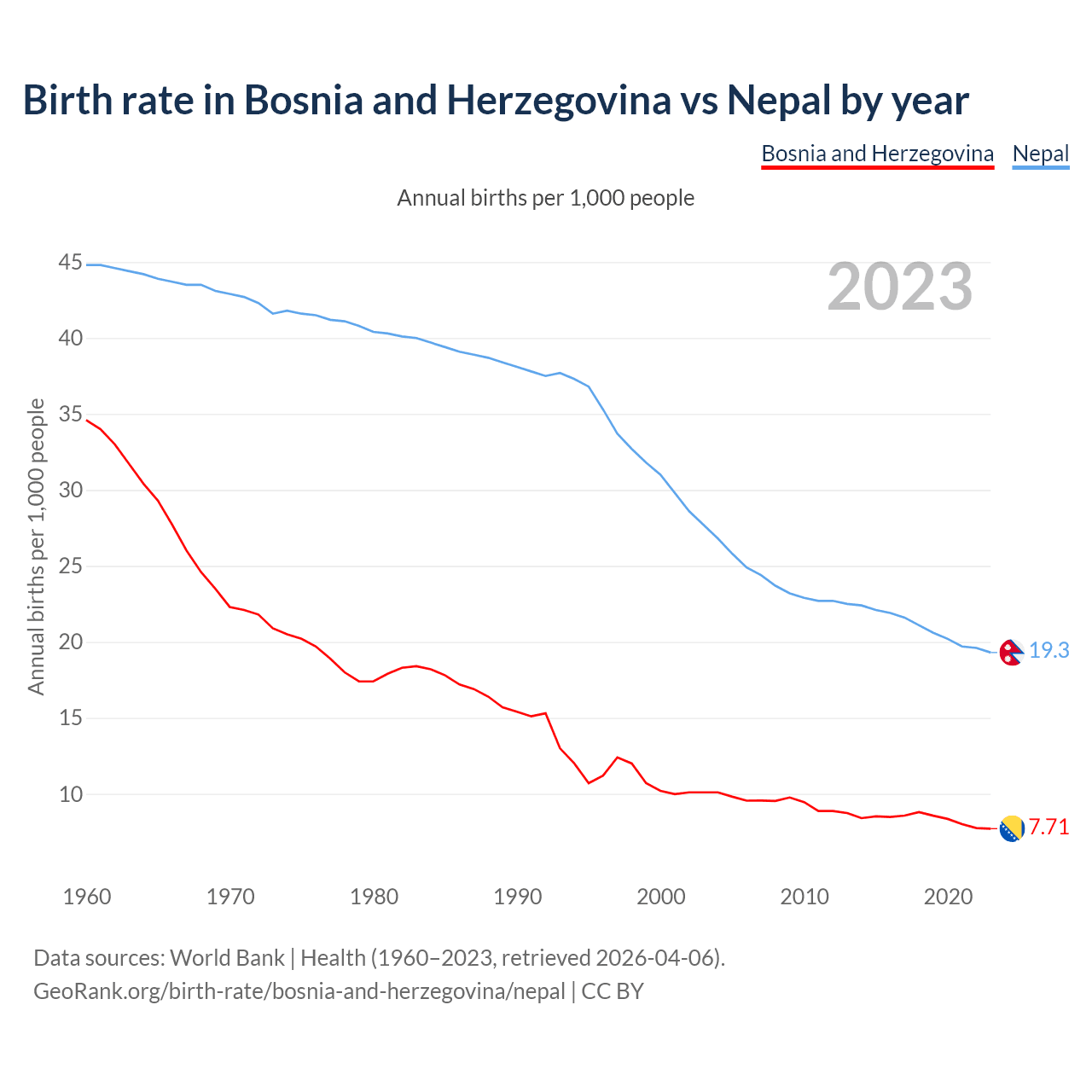 GeoRank.org/birth-rate/bosnia-and-herzegovina/nepal | CC BY