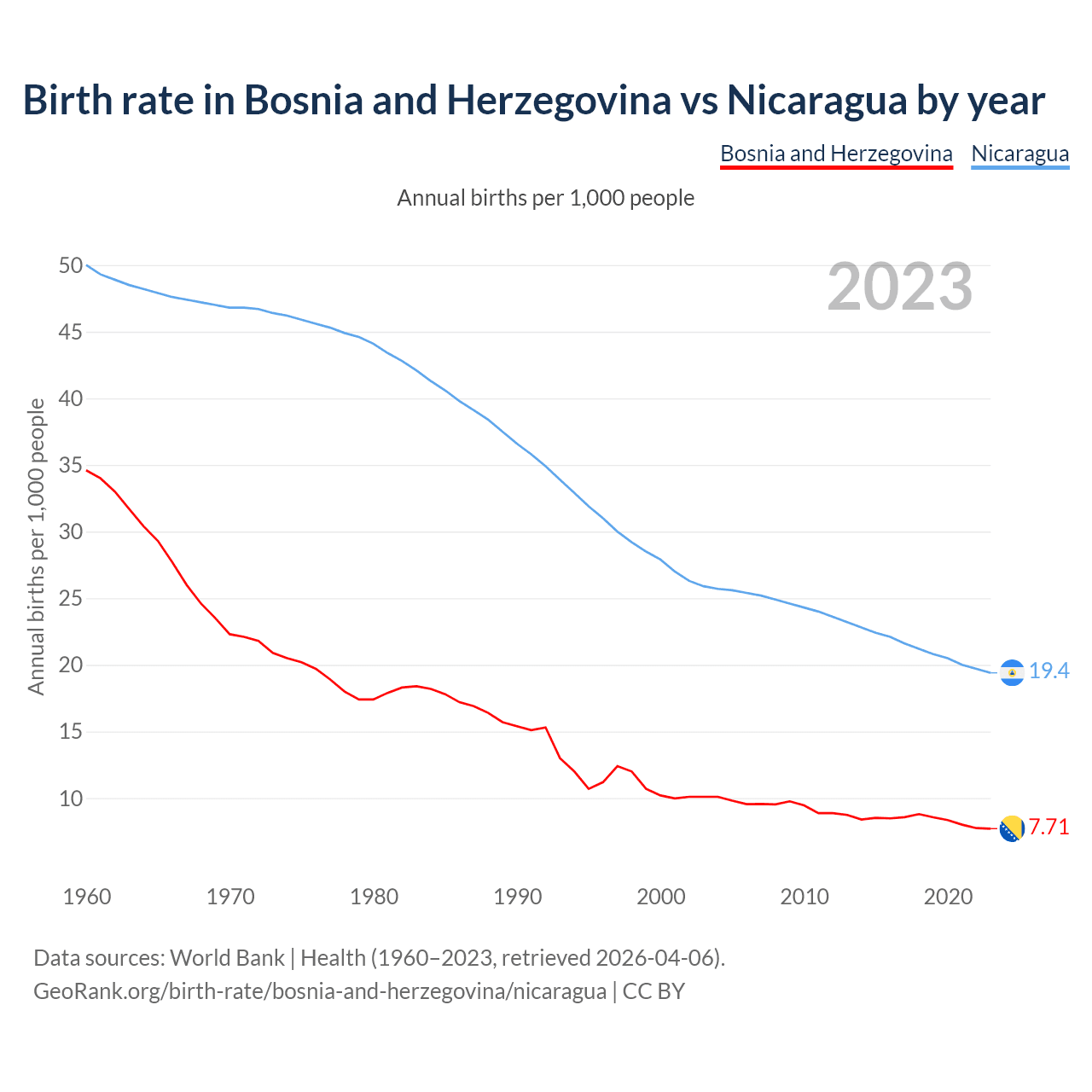 GeoRank.org/birth-rate/bosnia-and-herzegovina/nicaragua | CC BY