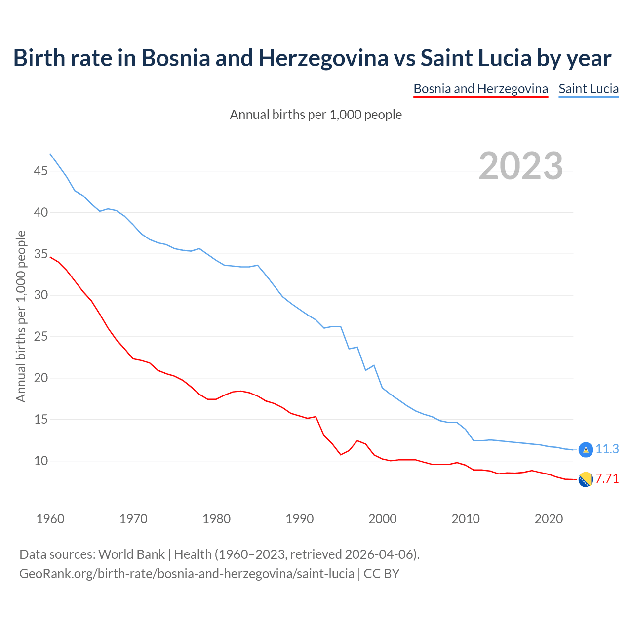 GeoRank.org/birth-rate/bosnia-and-herzegovina/saint-lucia | CC BY
