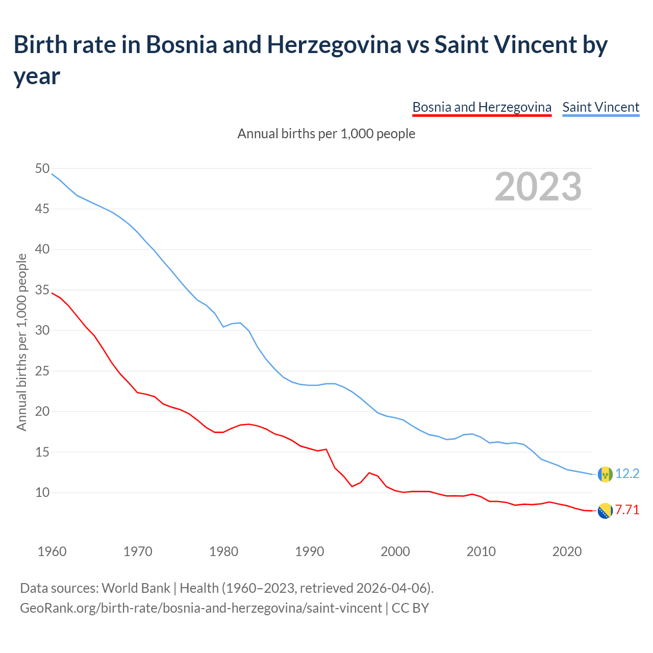 GeoRank.org/birth-rate/bosnia-and-herzegovina/saint-vincent | CC BY