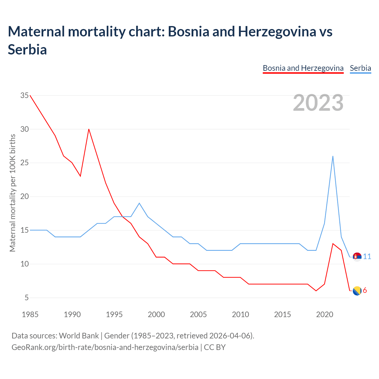 Maternal mortality chart: Bosnia and Herzegovina vs Serbia