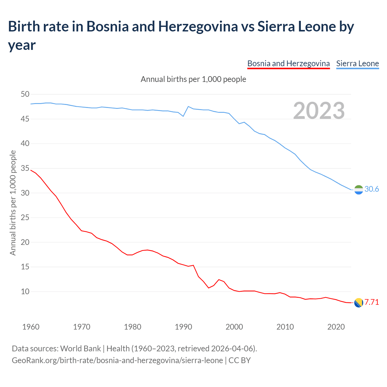 GeoRank.org/birth-rate/bosnia-and-herzegovina/sierra-leone | CC BY