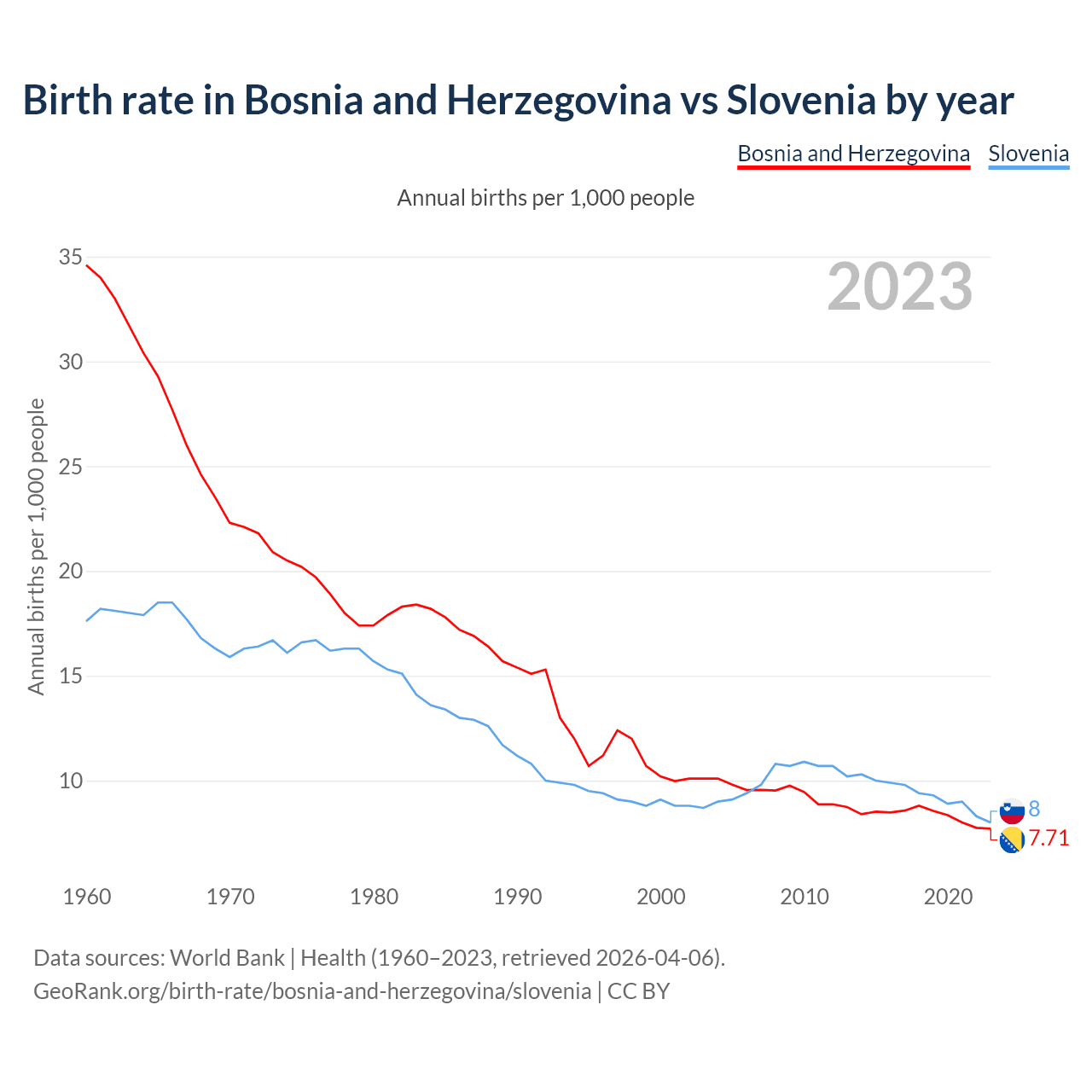 GeoRank.org/birth-rate/bosnia-and-herzegovina/slovenia | CC BY