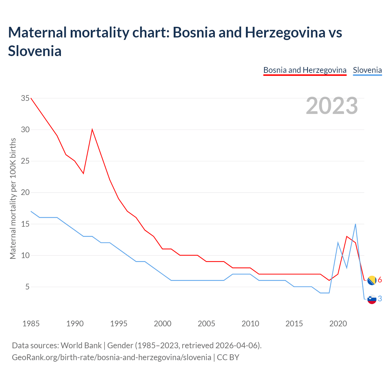 Maternal mortality chart: Bosnia and Herzegovina vs Slovenia