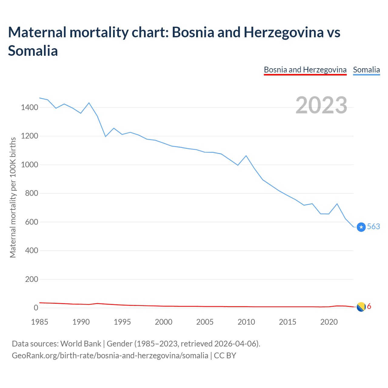 Maternal mortality chart: Bosnia and Herzegovina vs Somalia