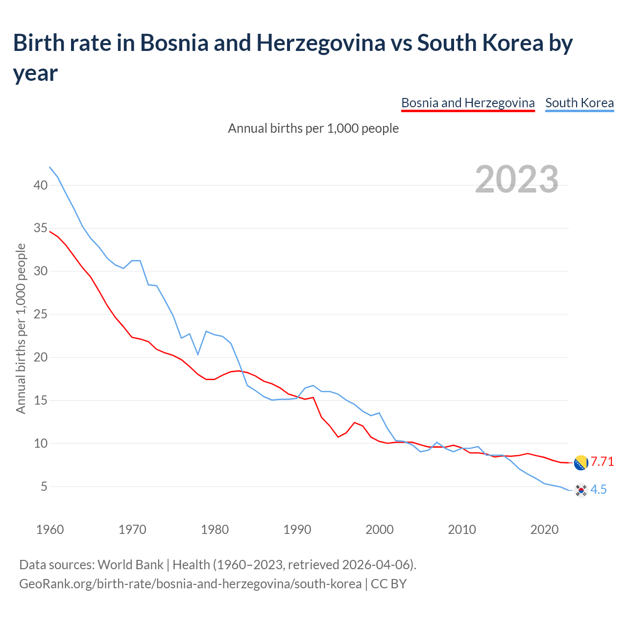 GeoRank.org/birth-rate/bosnia-and-herzegovina/south-korea | CC BY