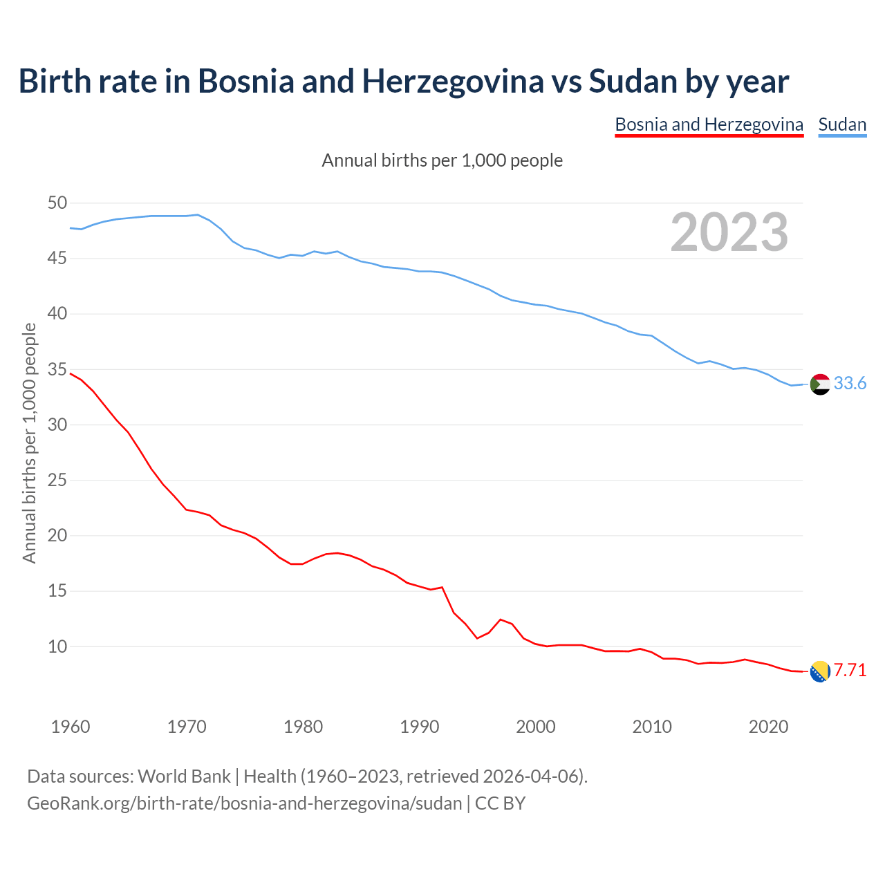 GeoRank.org/birth-rate/bosnia-and-herzegovina/sudan | CC BY