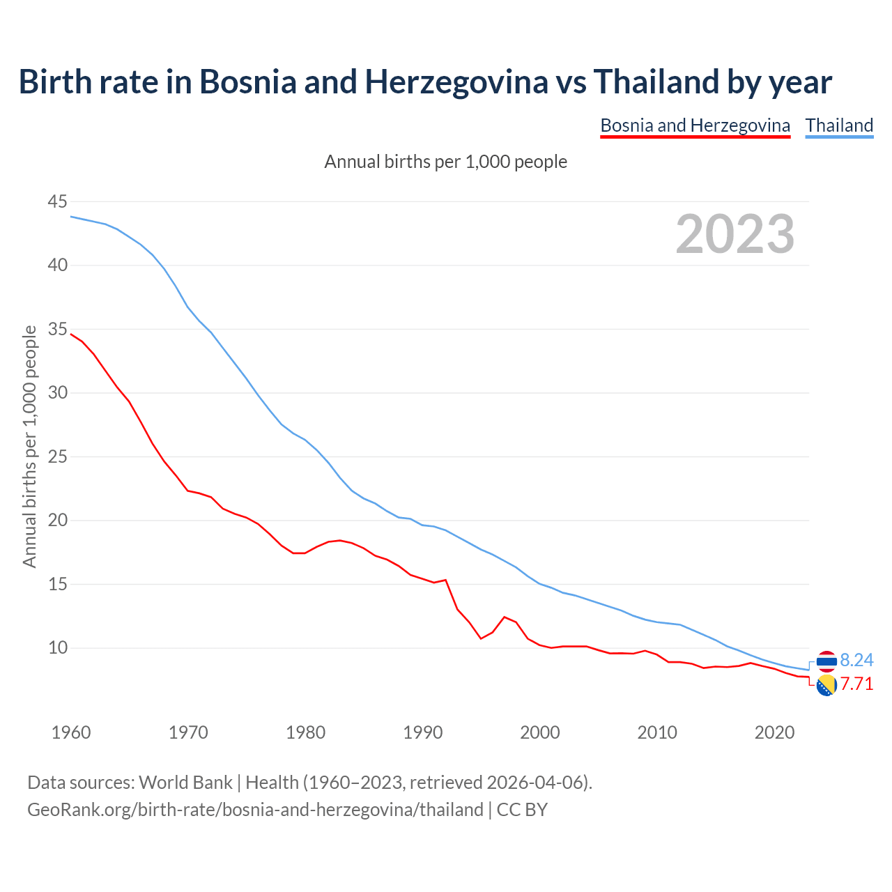 GeoRank.org/birth-rate/bosnia-and-herzegovina/thailand | CC BY