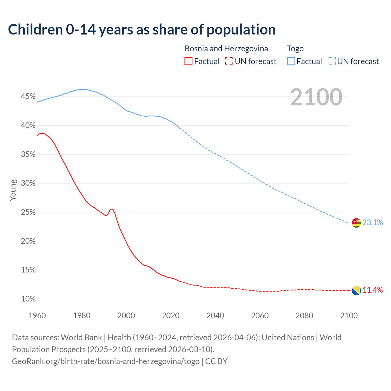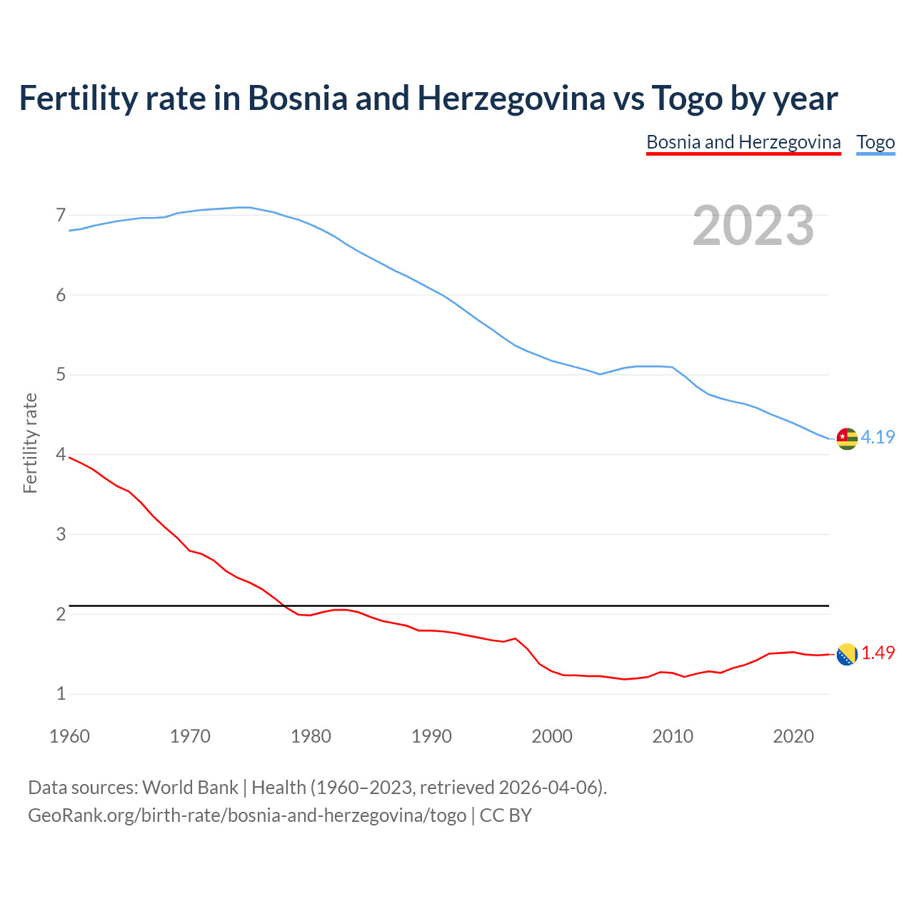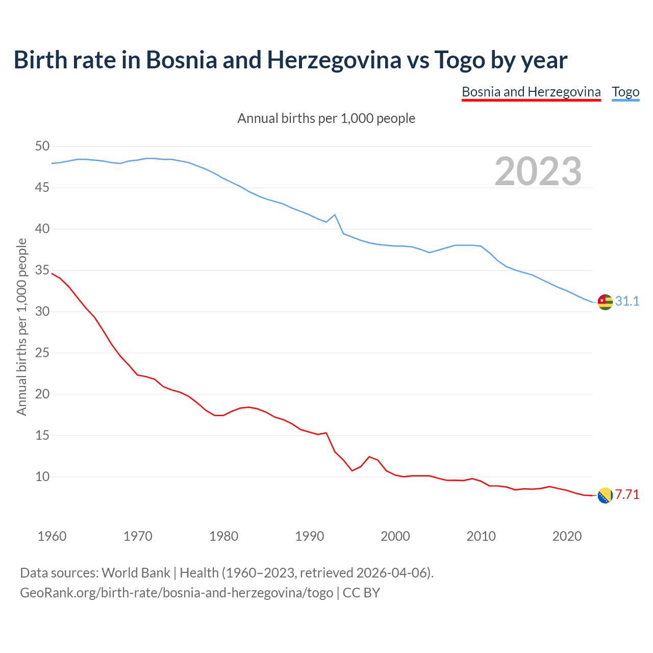 GeoRank.org/birth-rate/bosnia-and-herzegovina/togo | CC BY