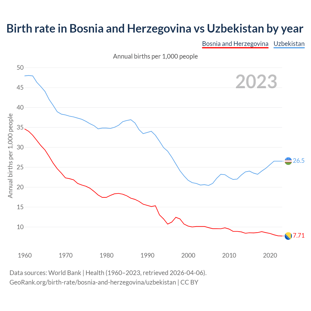 GeoRank.org/birth-rate/bosnia-and-herzegovina/uzbekistan | CC BY
