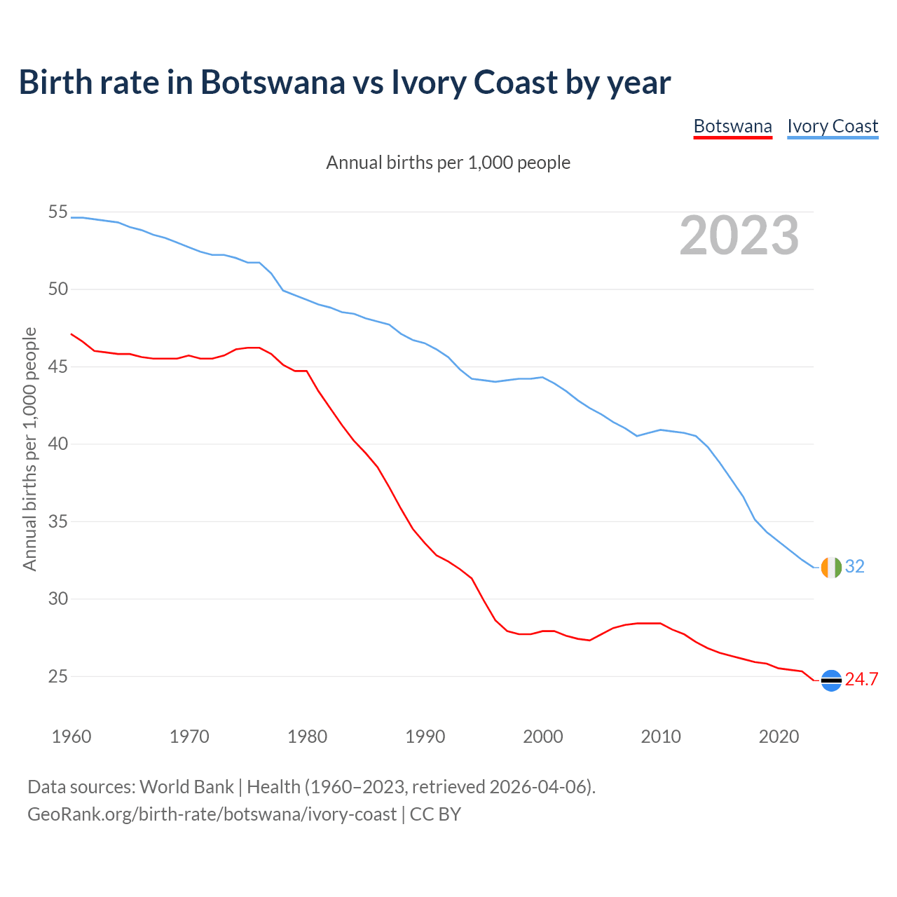 GeoRank.org/birth-rate/botswana/ivory-coast | CC BY