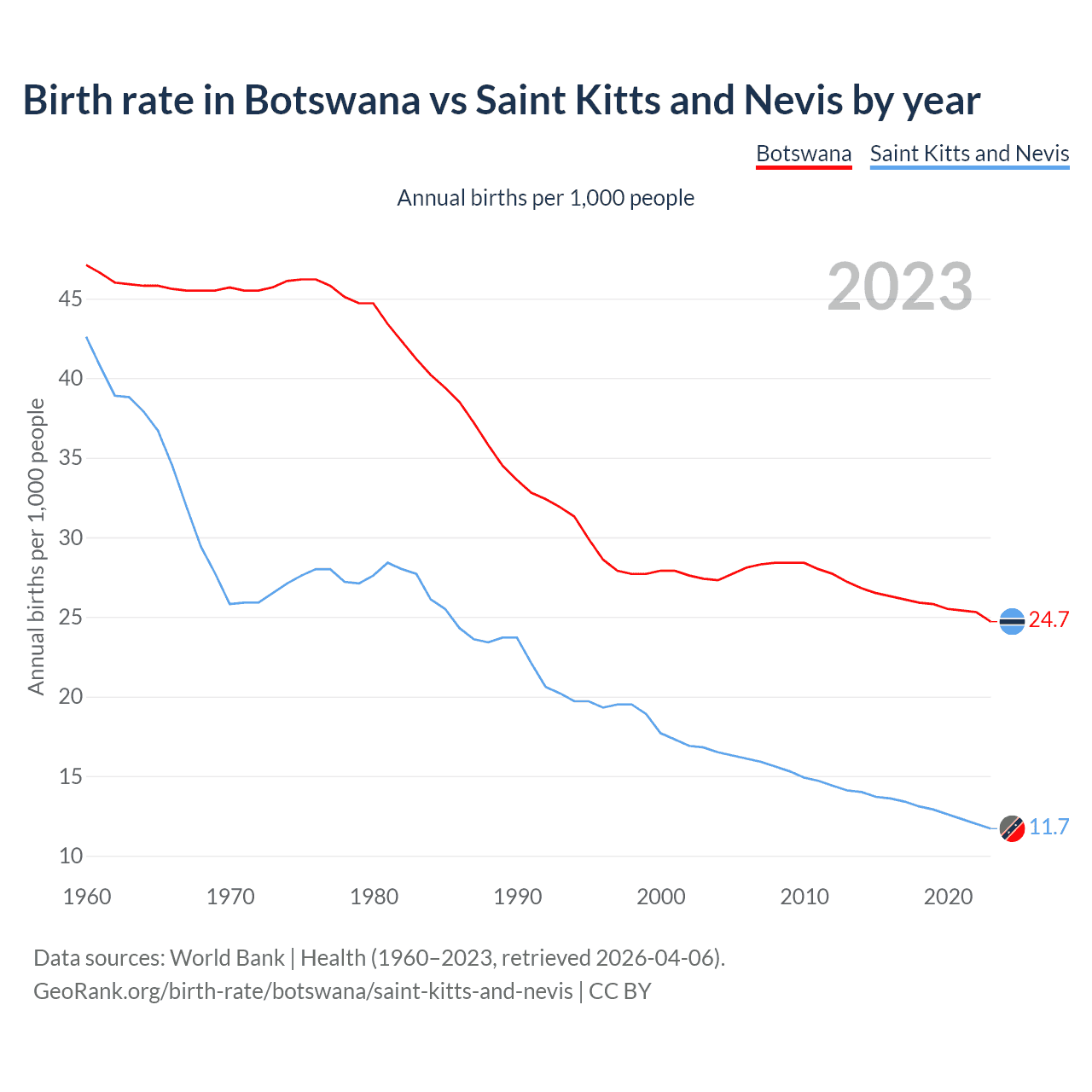 GeoRank.org/birth-rate/botswana/saint-kitts-and-nevis | CC BY