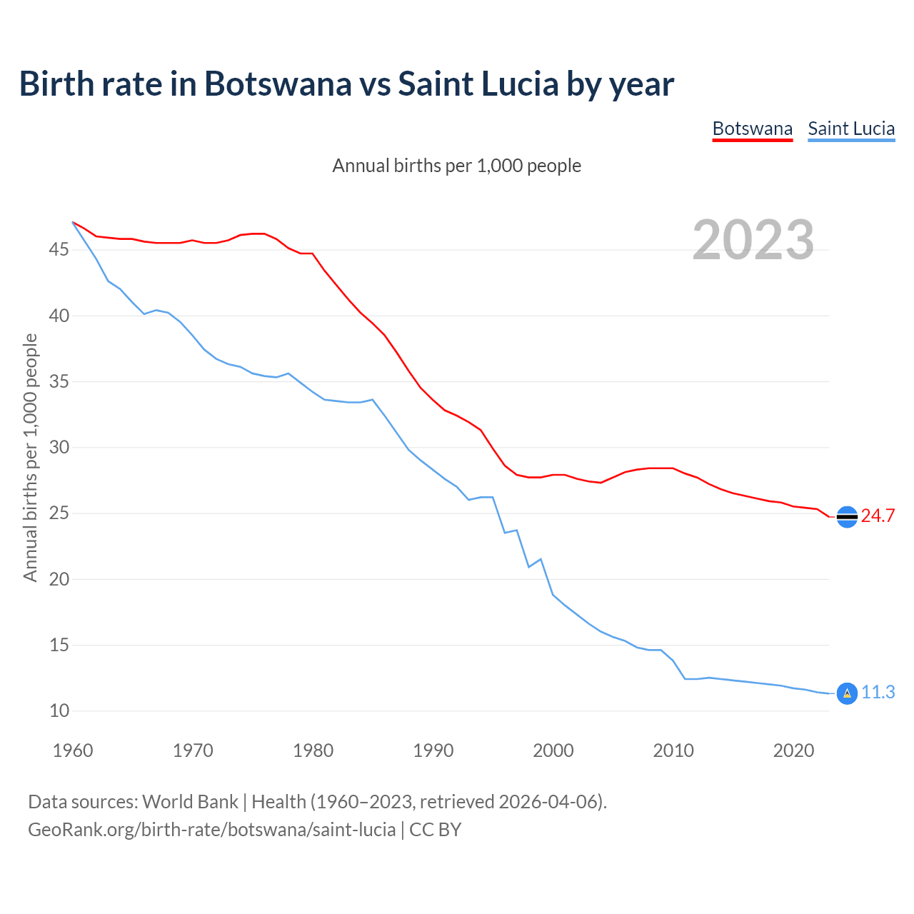 GeoRank.org/birth-rate/botswana/saint-lucia | CC BY