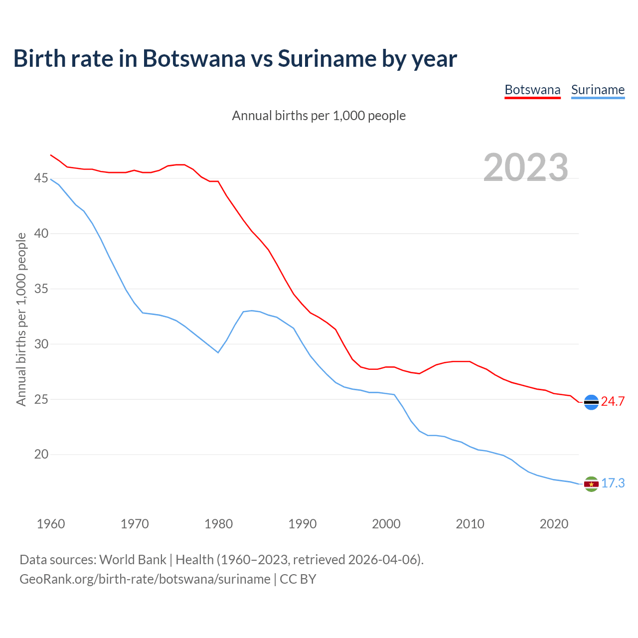 GeoRank.org/birth-rate/botswana/suriname | CC BY